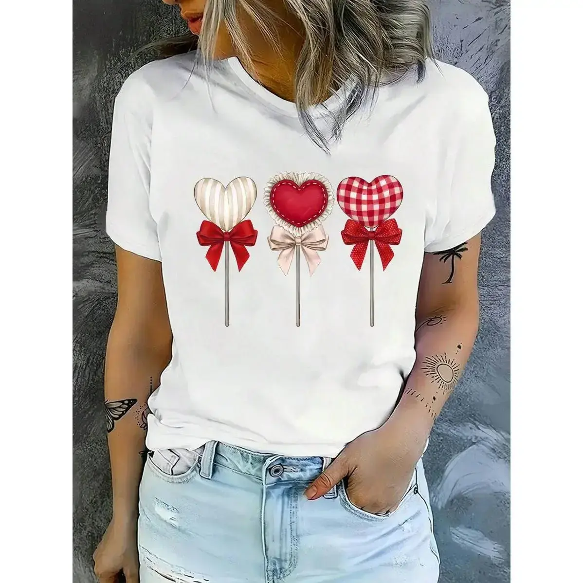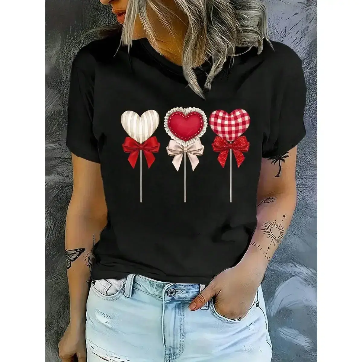 Women Casual T-Shirt, Comic Heart Pattern For Valentine's Day