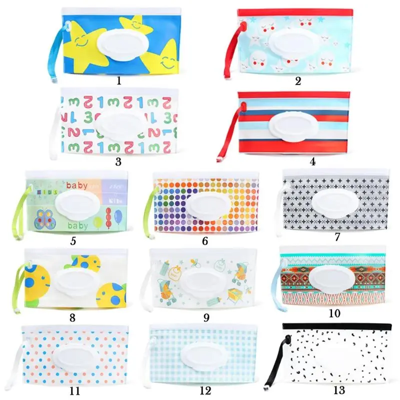 EVA Baby Wet Wipe Pouch Cute Snap-Strap Refillable Wet Wipes Bag Flip Cover Tissue Box Outdoor Useful Baby Stroller Accessory
