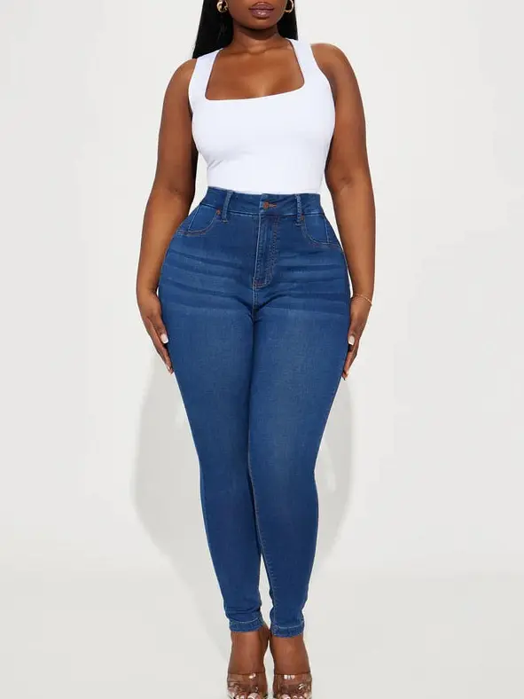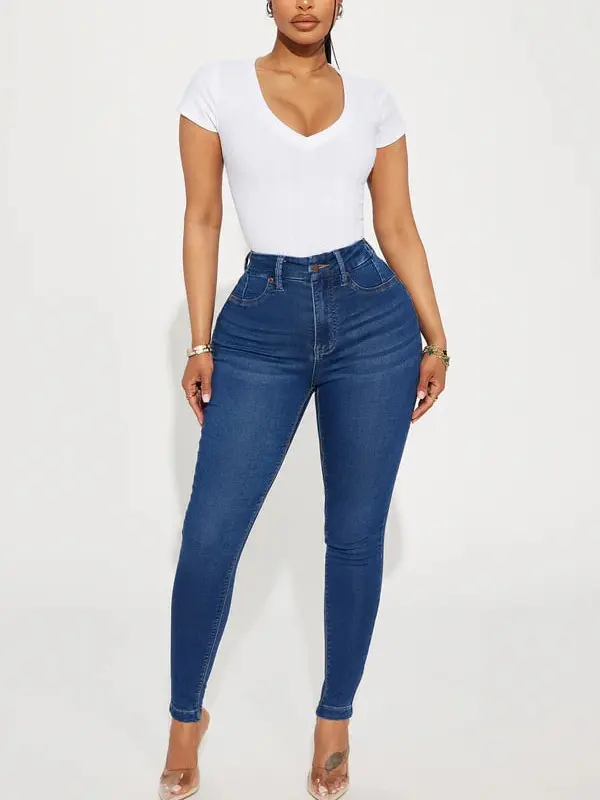 Classic High Waist Skinny Jeans - Medium Blue Wash