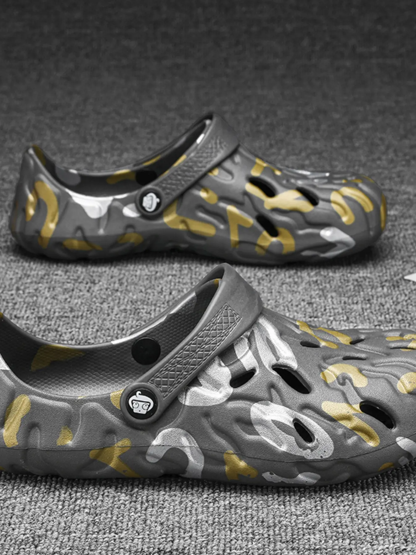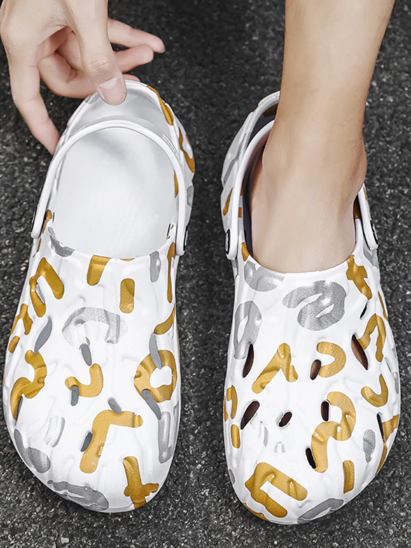 Men's Large Size Printed Holey Shoes, Summer Eva Anti-Slip Driving Sandals, Outdoor Beach Slippers, Couples' Wearable Footwear