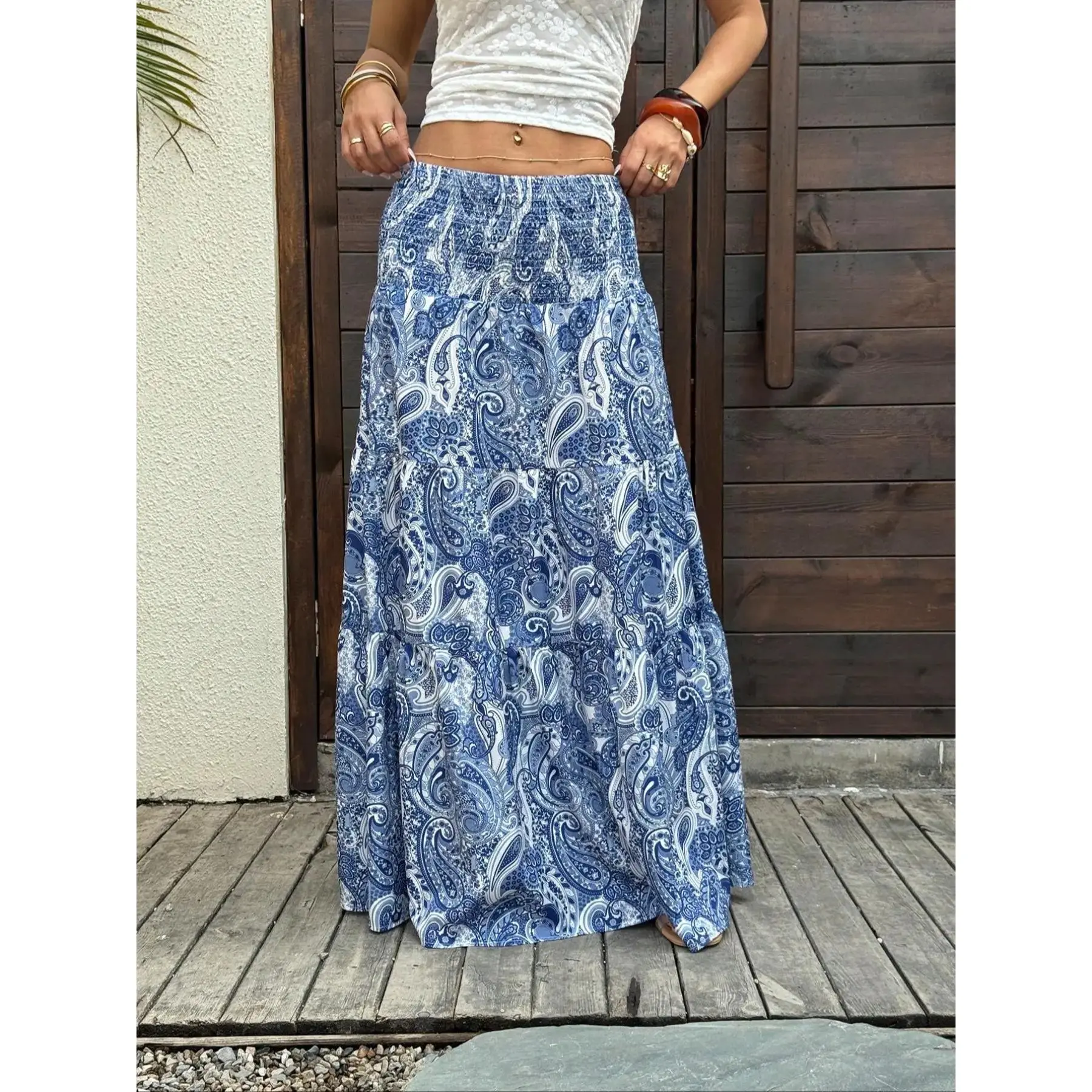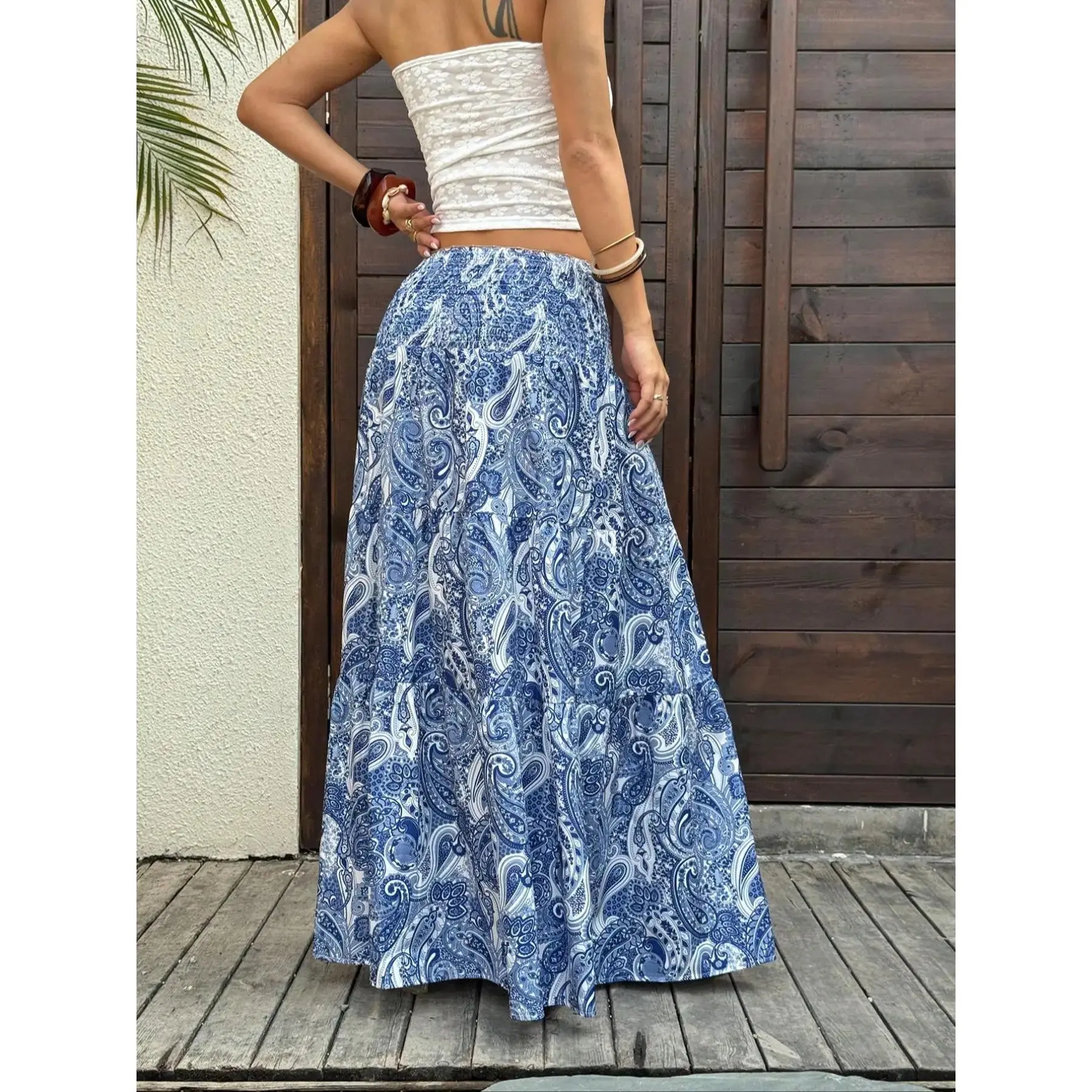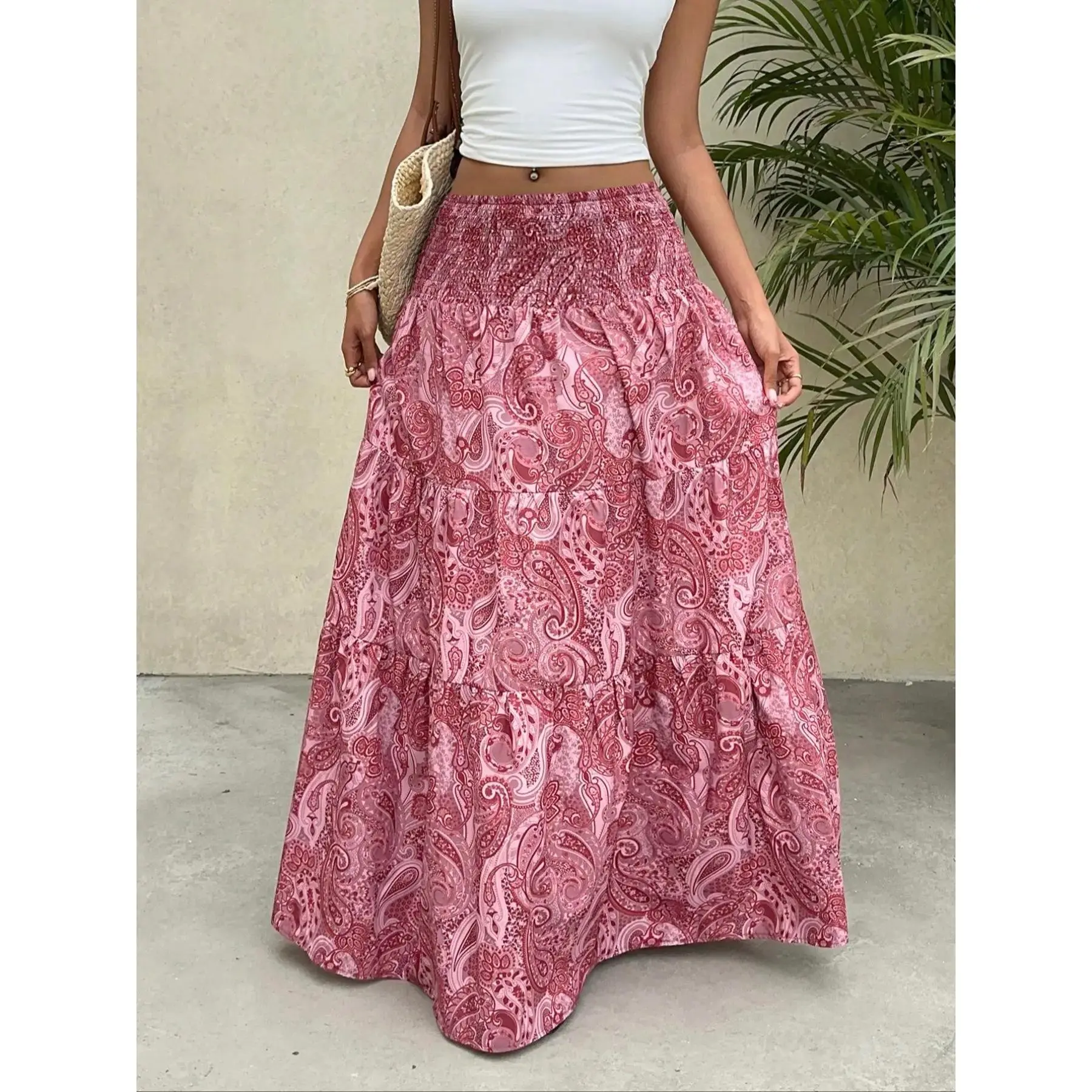 Women's Paisley Print Boho Maxi Dress, Fitted Waist Long Skirt, Comfortable All-Season Woven Fabric, Perfect for Vacation & Casual Wear, Casual Comfy Skirt