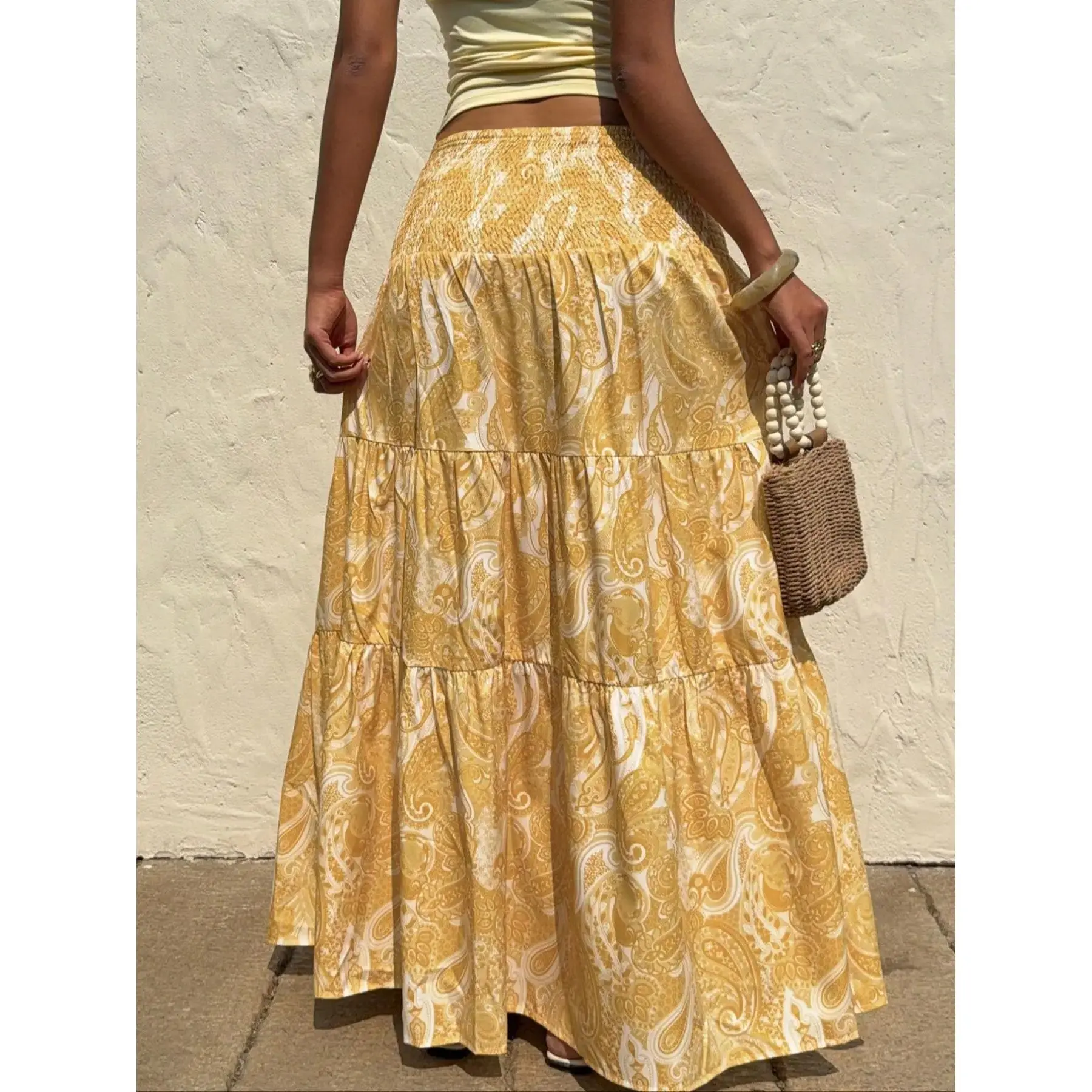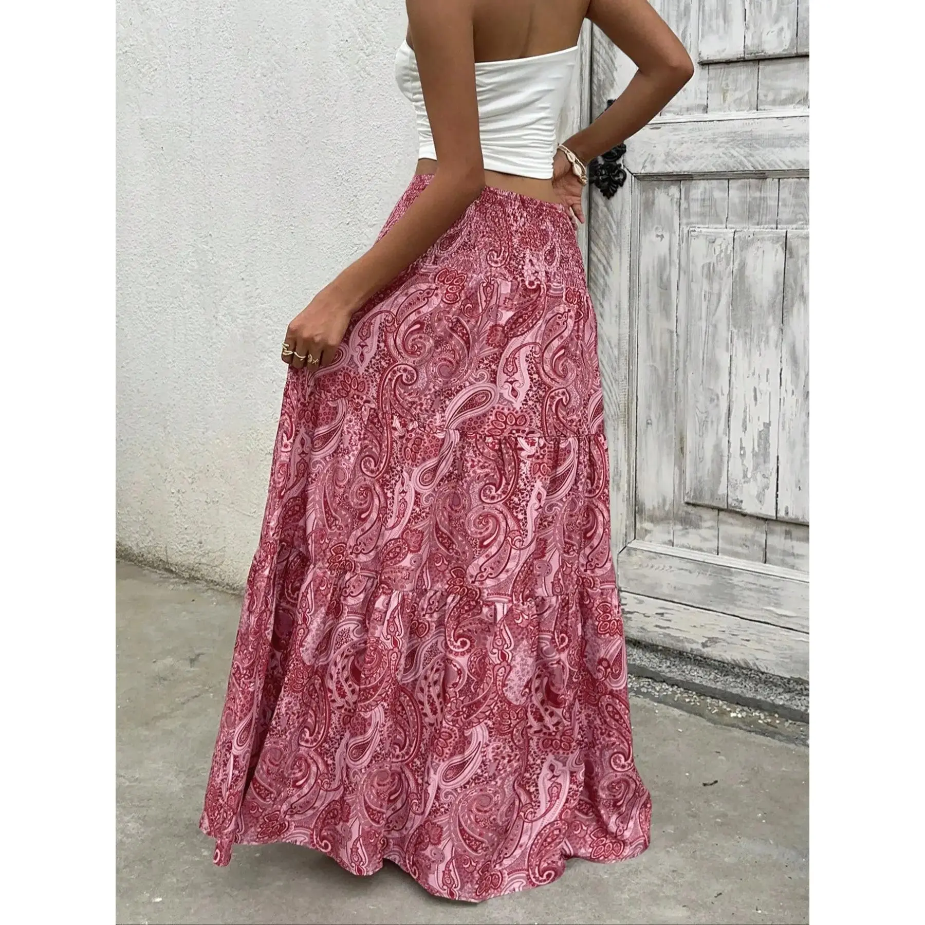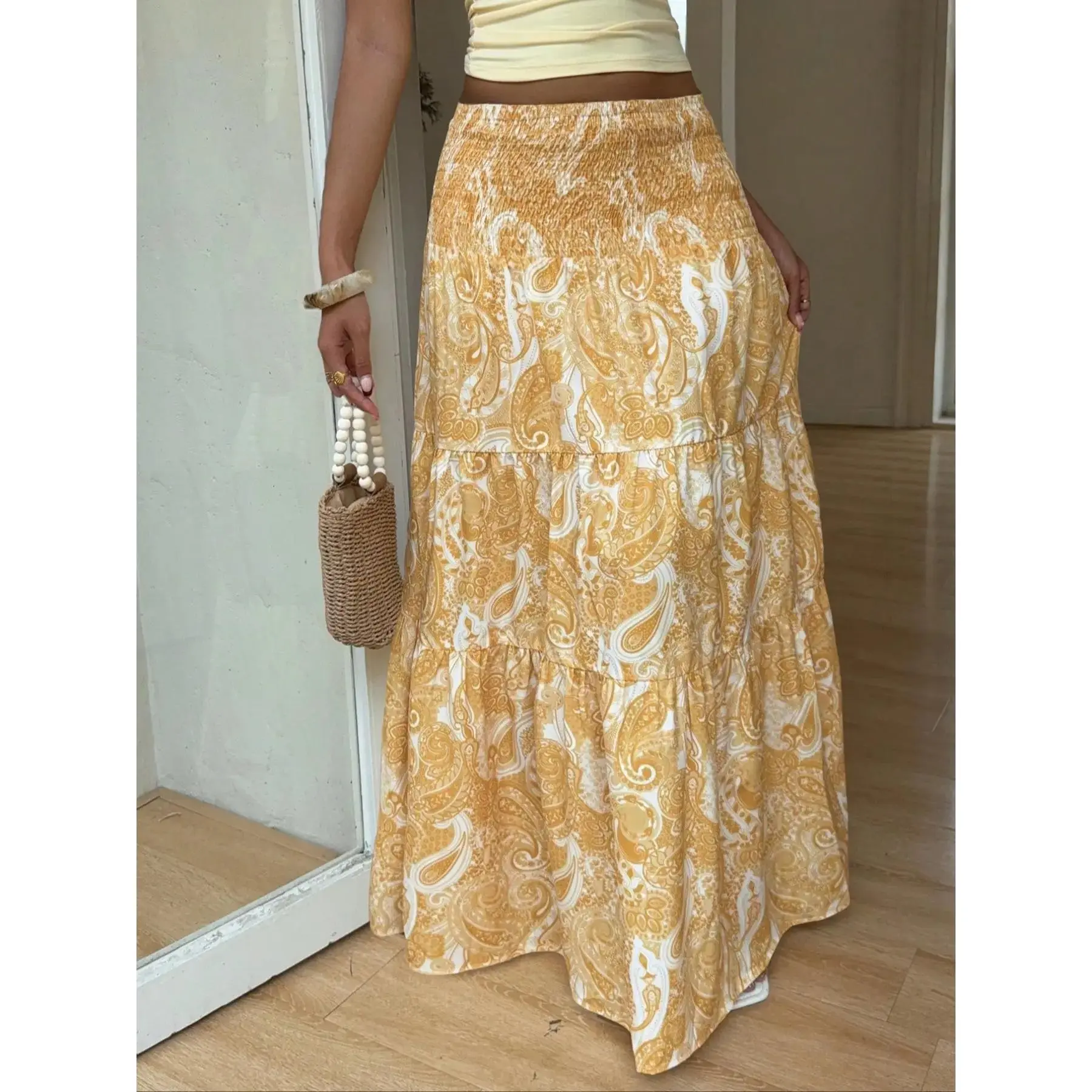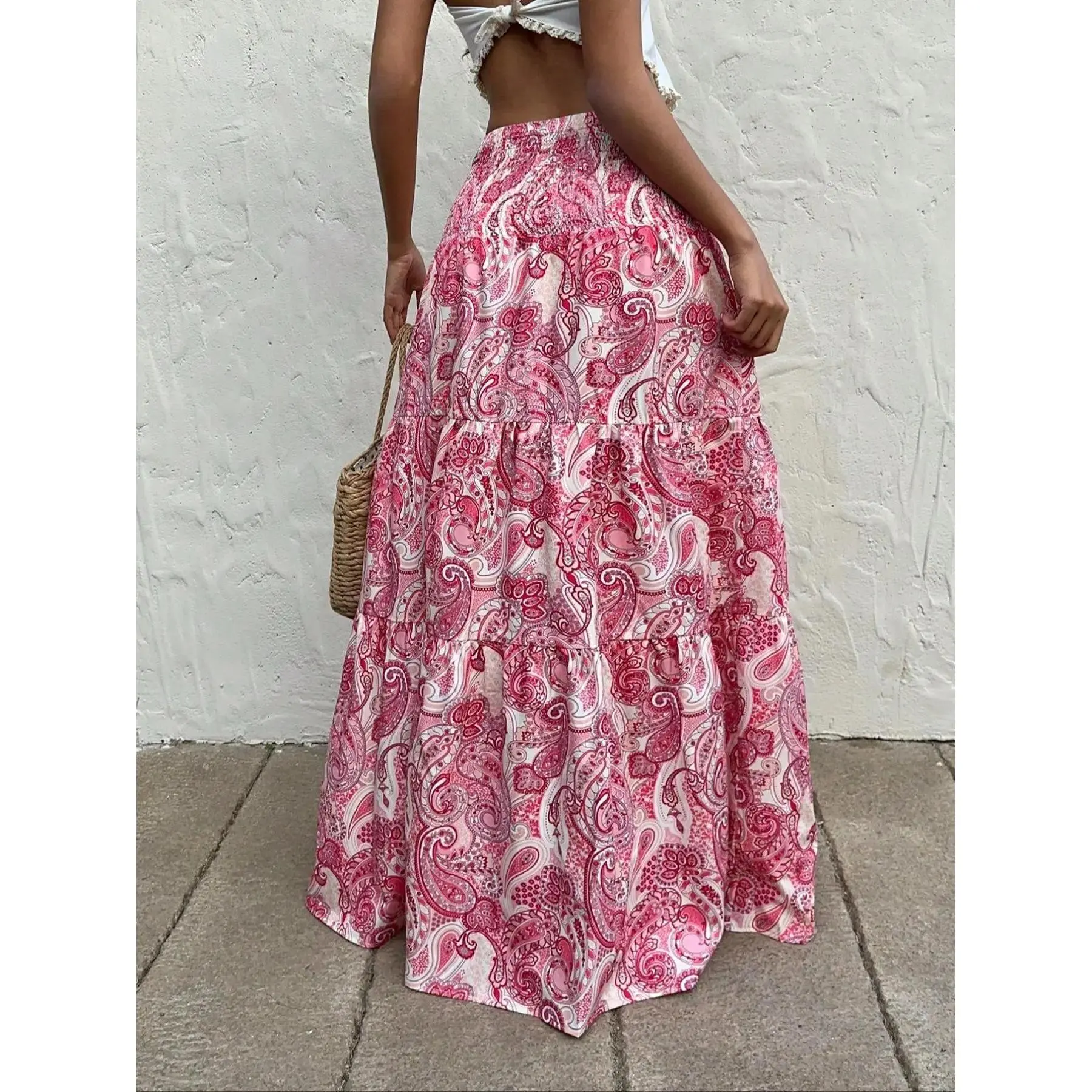 Women's Paisley Print Boho Maxi Dress, Fitted Waist Long Skirt, Comfortable All-Season Woven Fabric, Perfect for Vacation & Casual Wear, Casual Comfy Skirt