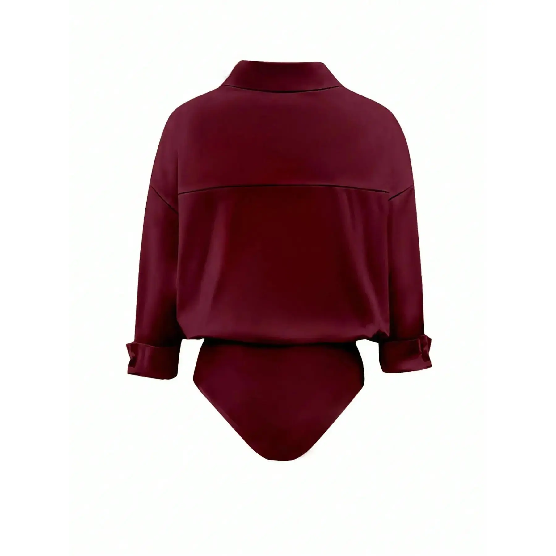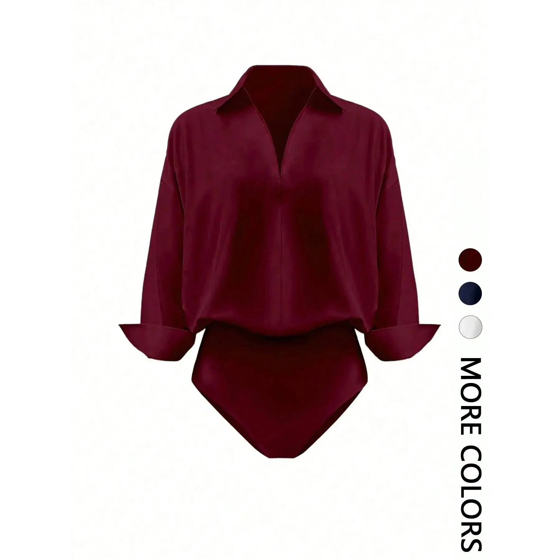 Valentine's Day Women's Casual Solid Color body suit Jumpsuit, Ladies' Relaxed Long Sleeve Lapel Fit One-Piece, Comfortable All-Season Wear