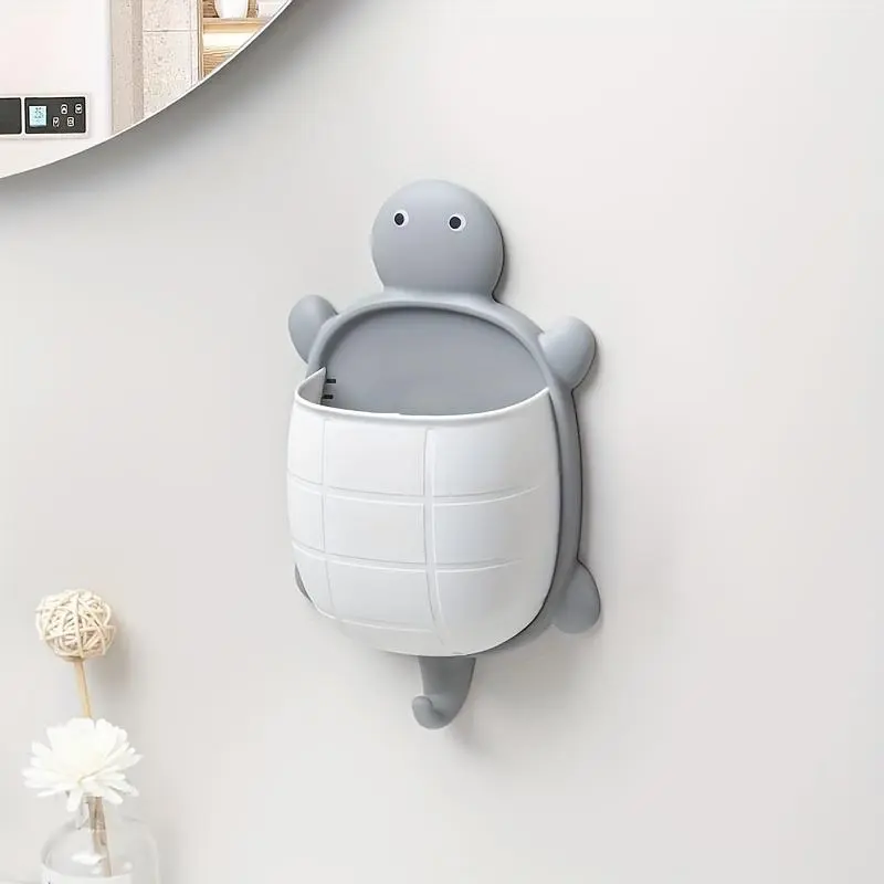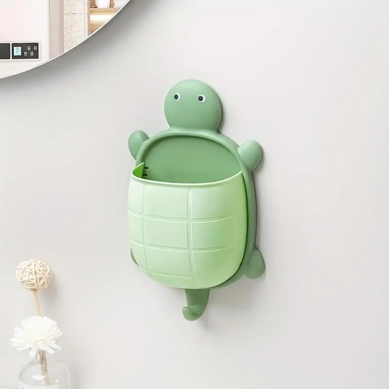 1pc Cute Hanging Bathroom Storage Basket With Hook, Punch Free Wall Mounted Plastic Box, Durable Storage Container For Toiletry, Makeup Items, Space Saving Organizer For Home, Bedroom, Kitchen