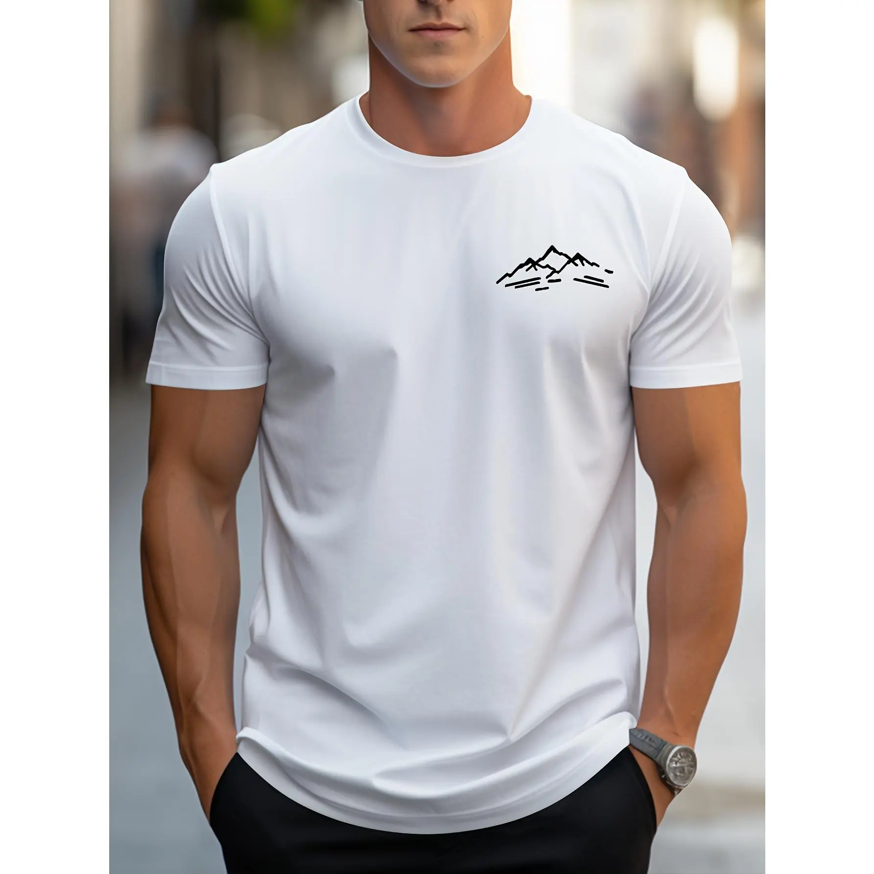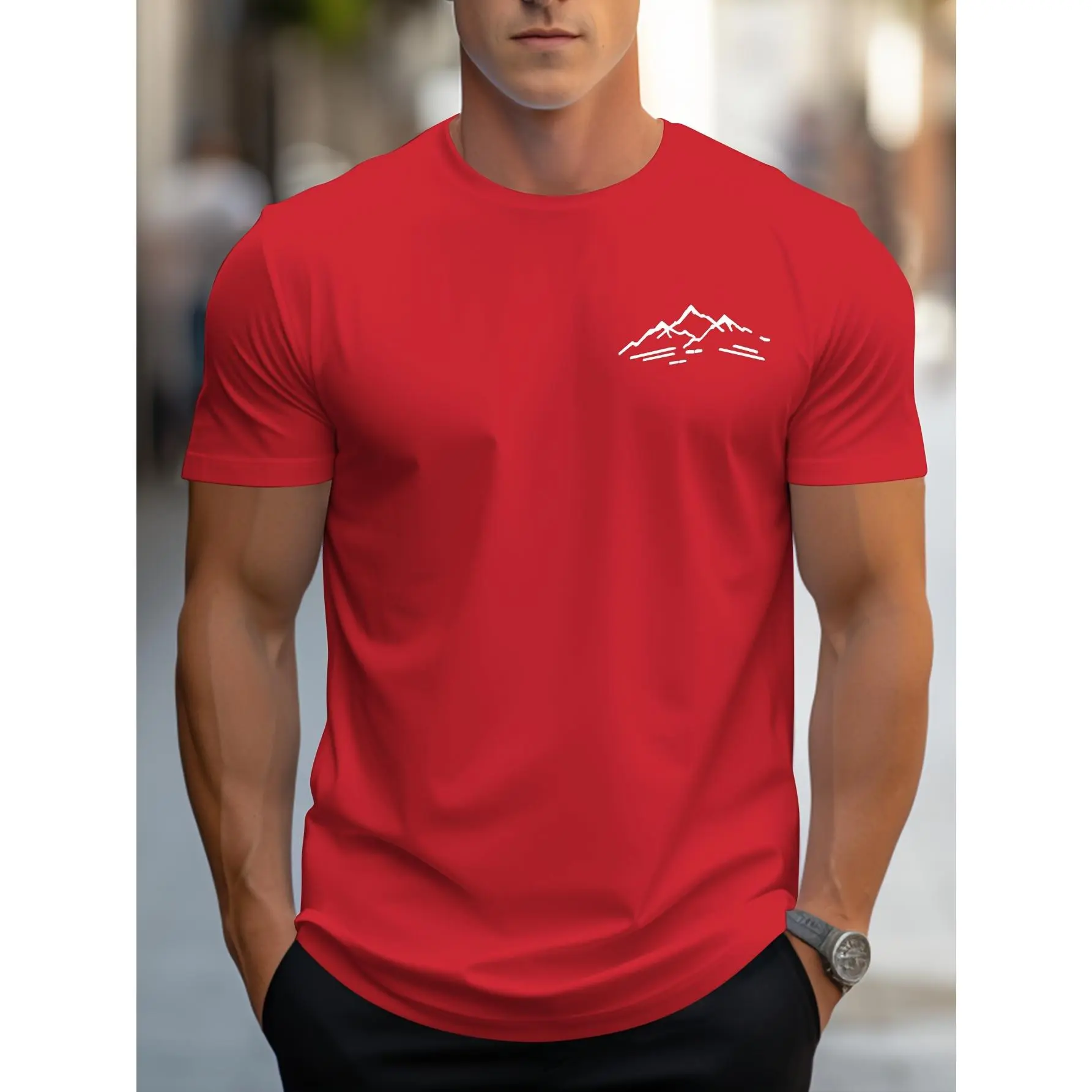 Men'S Fashion Easy Mountain Pattern Print Crew Neck Short Sleeve T-Shirt | Comfortable and Versatile, Suitable for All Seasons, Ideal for Casual Outings