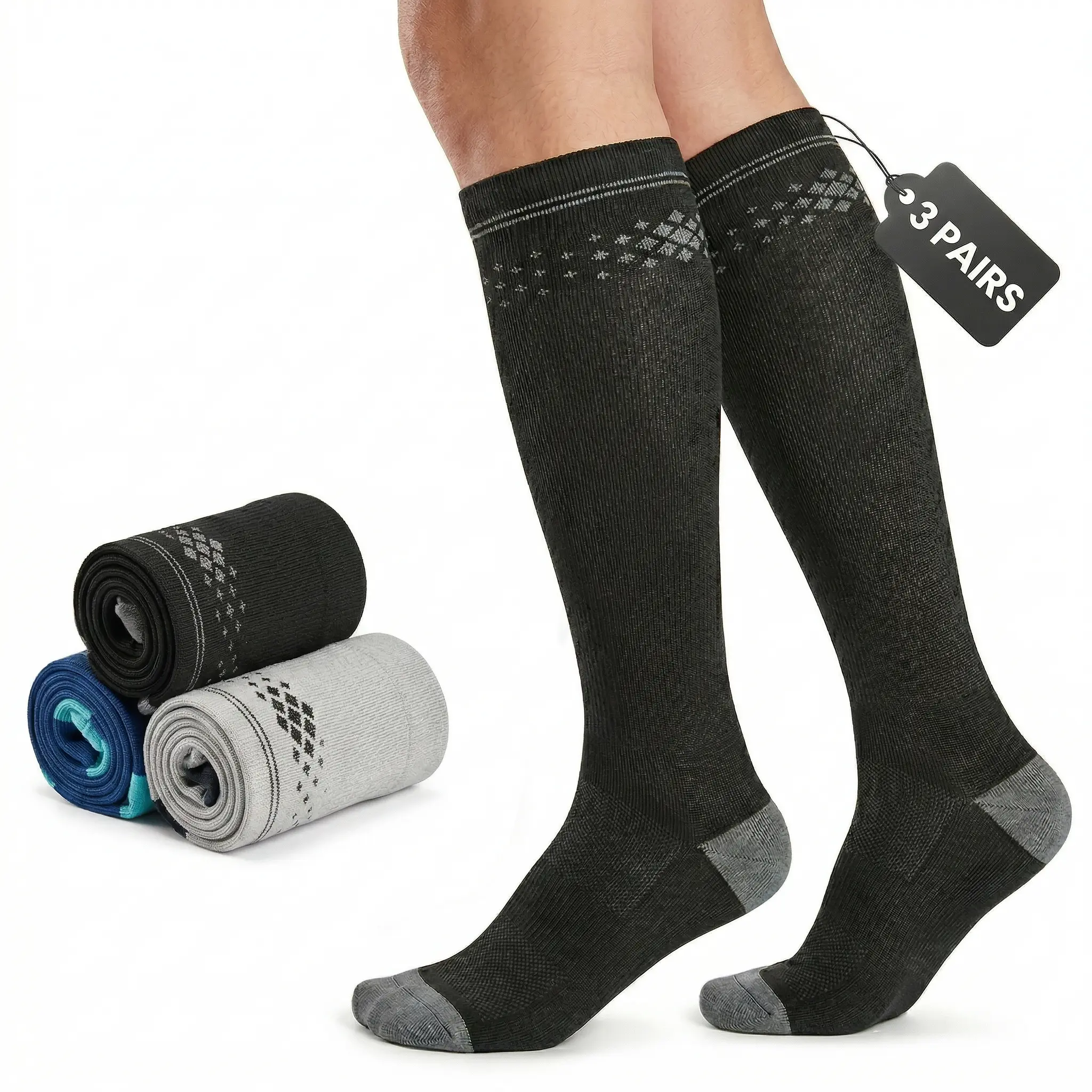 【20-30 mmHg Graduated Compression】Engineered with professional 20-30 mmHg graduated compression, these men's knee-high socks provide maximum support at the ankle that gradually decreases up the leg. This optimal pressure profile helps promote healthy blood circulation, prevents swelling, and effectively reduces muscle fatigue and leg achiness during long days.