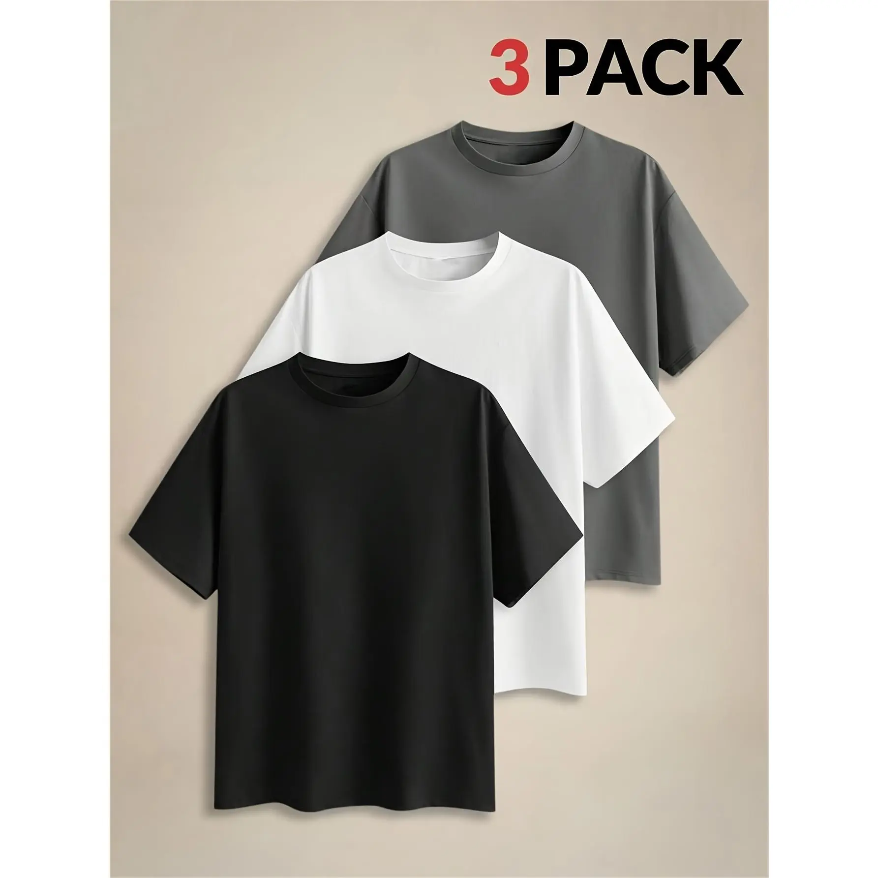 [Tang Yunshu Selection] Men's Short-Sleeve T-Shirt - Pack of Round-Neck Loose-Fit Short-Sleeve T-Shirts, Breathable and Skin-Friendly Special Material, Oversized Fit, Unrestricted Movement, Sweat-Absorbent and Non-Stuffy, Suitable for Daily Outings / Home