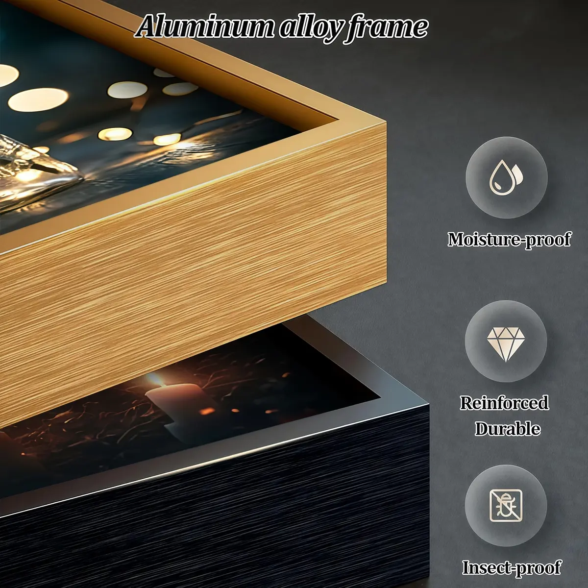 3 Counts Aluminum Alloy Framed Painting, Abstract Wood Texture And Golden Spark Art Pictures, Home Decoration For Living Room, Bedroom, Office, Restaurant, Hallway Wall Decor, Odorless Print Artwork, Luxury Perfect Gift For Friends And Family
