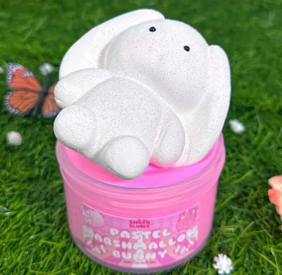 Texture: This slime features a thick & glossy slime base and coquette cat clay add-on. Once mixed, the texture becomes a butter slime that’s great for squishes!