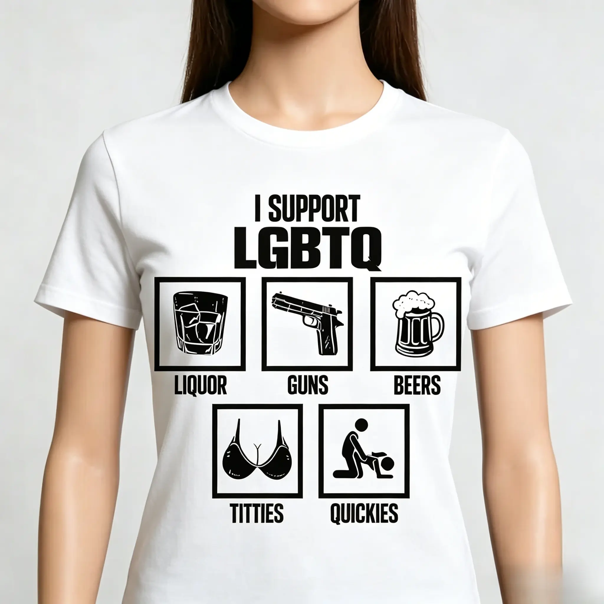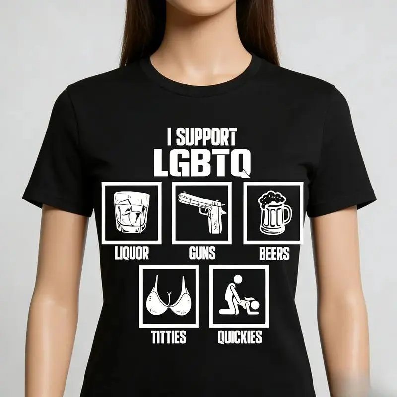 Basic Tee Club I Support LGBTQ Liquor Guns Beers Titties Quickies Tee Funny Meme Cotton Unisex Crew Neck Tshirt for Daily Wear Gift for Everyone - Top, Womenswear