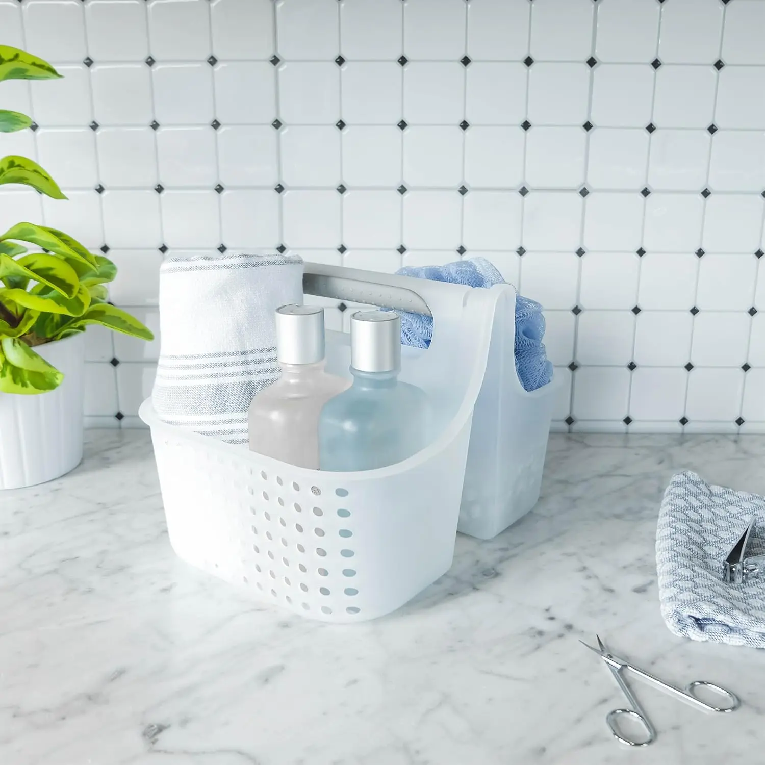 ·BATHROOM TOTE: Offers a practical solution for organizing your bathroom essentials such as soaps, hair products, body scrubbers, brushes, and even cleaning supplies, keeping them easily accessible