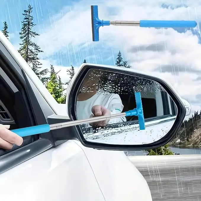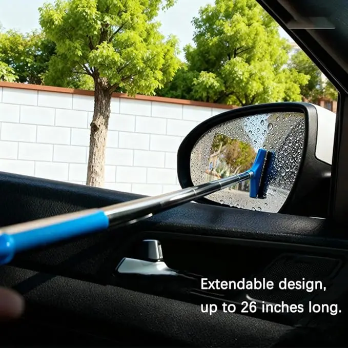 Extendable Rearview Mirror Wiper, Universal 26-Inch Car Mirror Cleaner for Safe Driving, Manual Windshield Wiper Tool for Truck SUV Van Car During Rain Snow