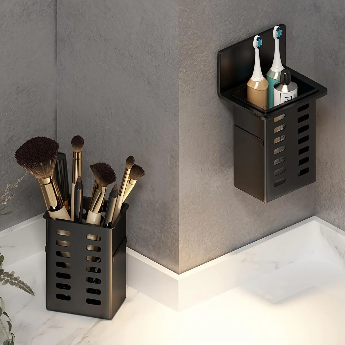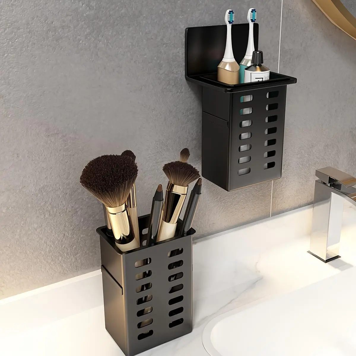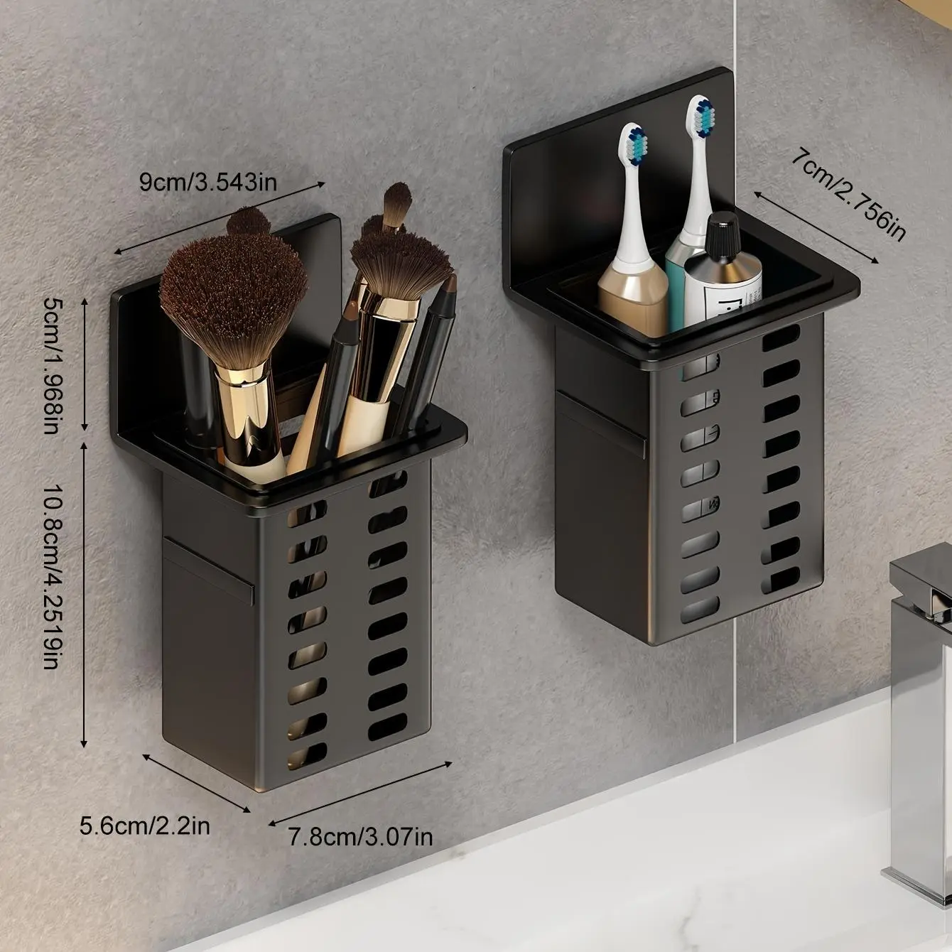 1pc/2pcs Black Bathroom Toilet Shelf, No-Drill Wall-Mounted Storage Rack for Small Items and Tools, for Bathroom, Shower, Washroom, and Vanity, Shelves