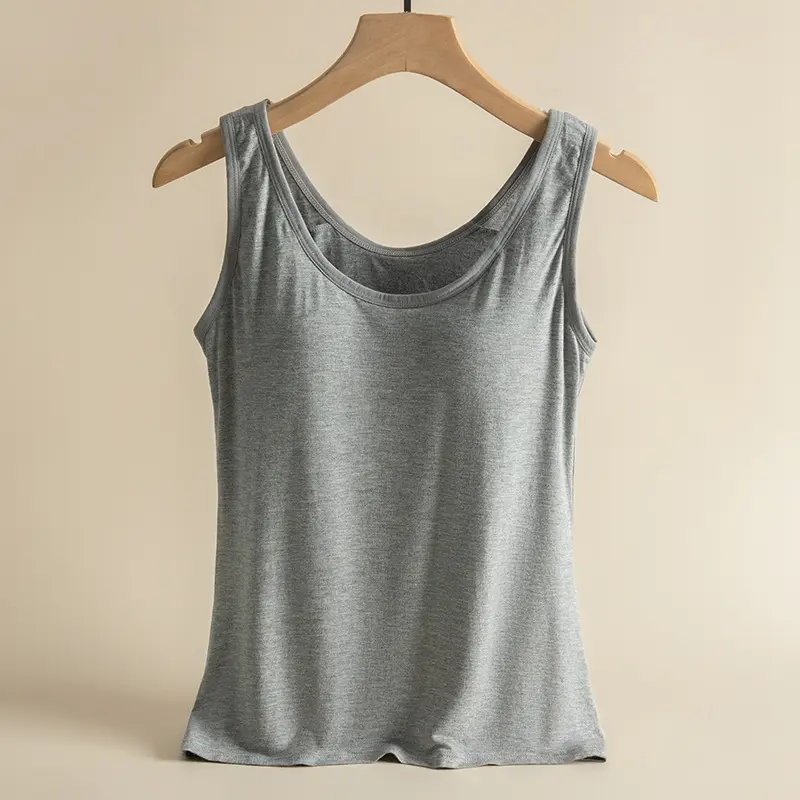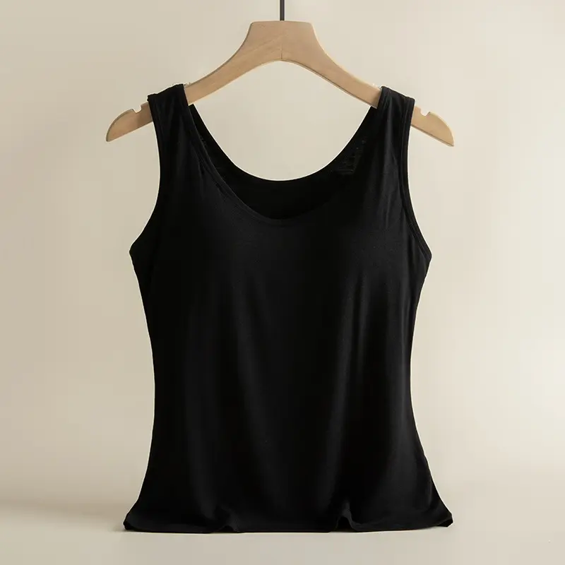 QINSEN Women's Double Lined Basic Tank Top Adjustable Spaghetti Straps Sleeveless Camisole Shirts