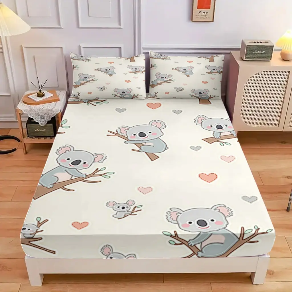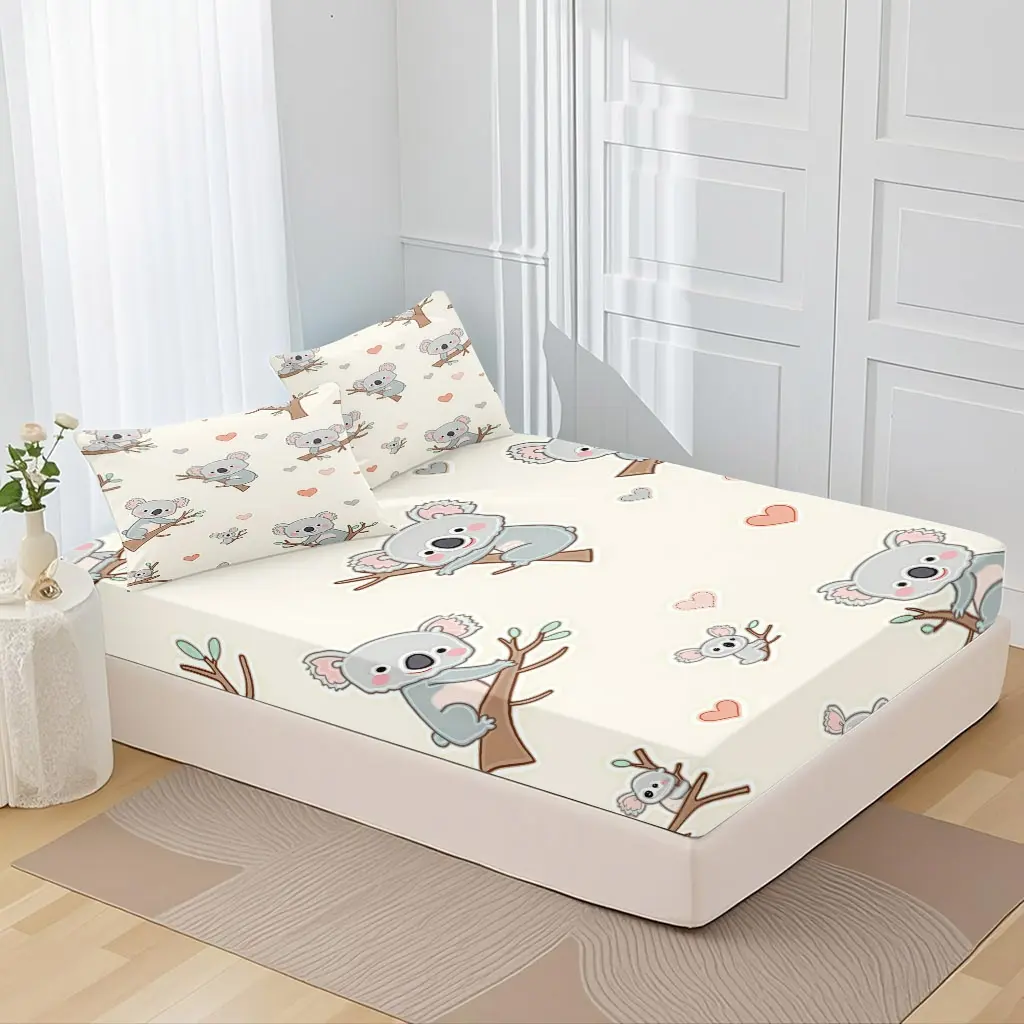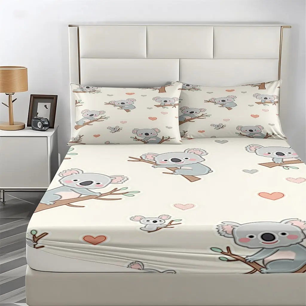 3-Piece Set Of Koala On The Tree And Heart-Shaped Bed Hat, High-Definition Digital Printing, Soft And Breathable, 100% Polyester Fiber, Perfect Gift For All Seasons, Suitable For Family And Friends. Clearance Sale