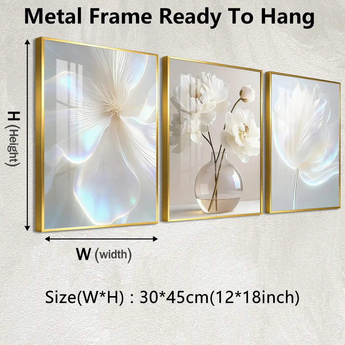 3 Counts Aluminum Alloy Framed Painting, White Floral Vase Artwork, Home Decoration For Living Room, Bedroom, Office, Restaurant, Hallway Wall Decor, Odorless Print Artwork, Luxury Perfect Gift For Friends And Family