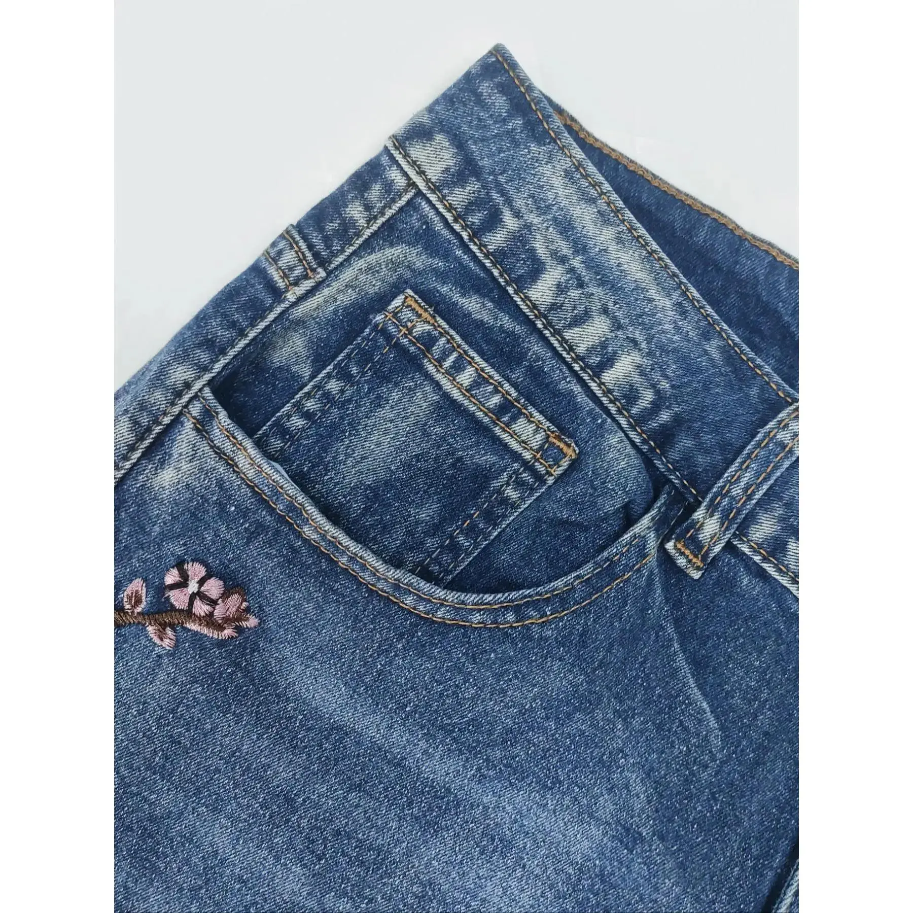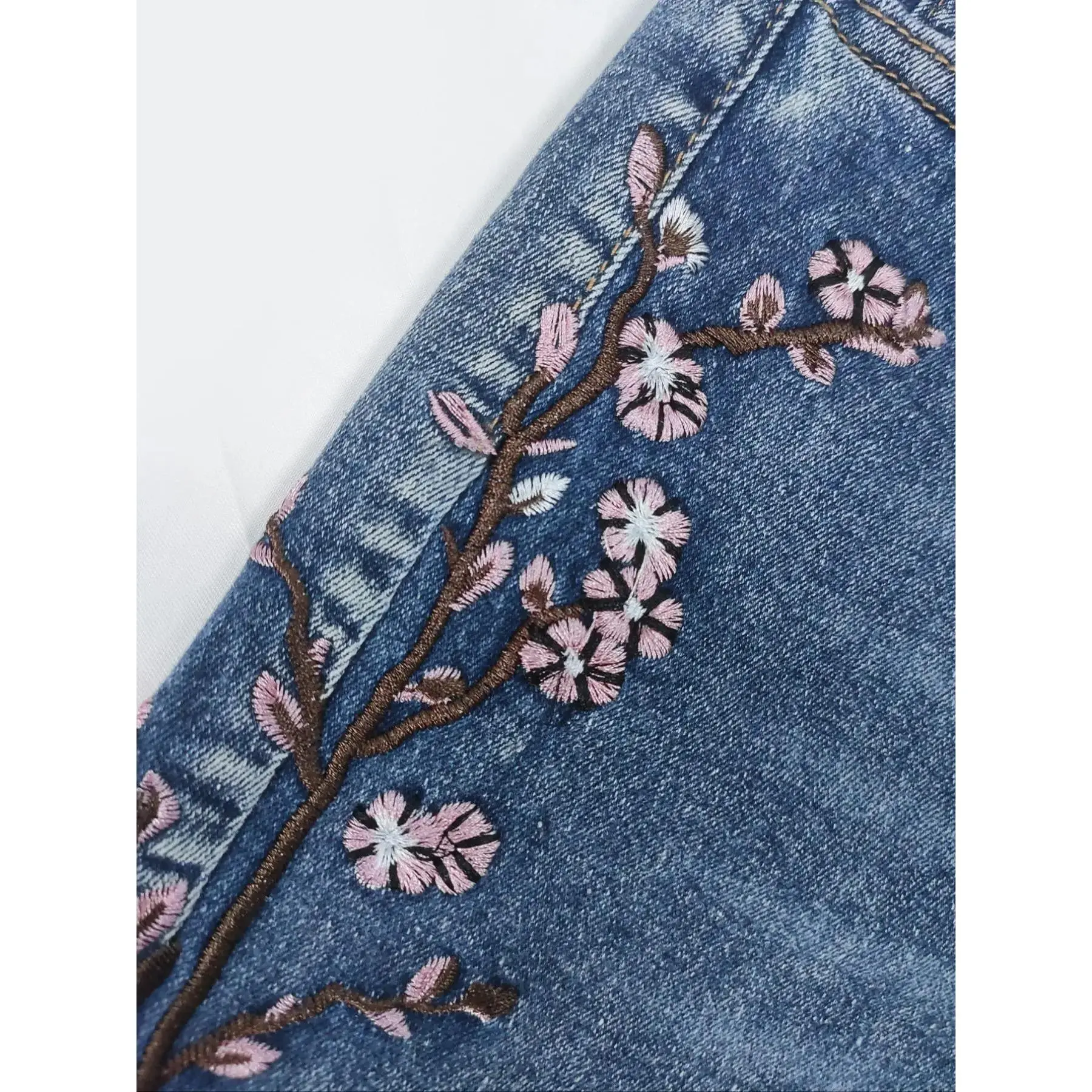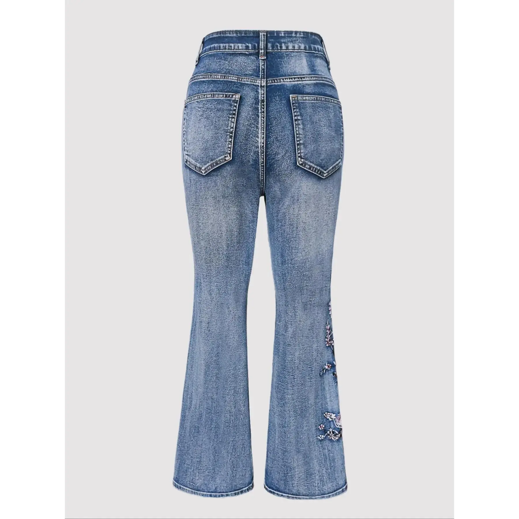 Women's Floral Embroidery Denim Pants, Fashion Casual Comfy Loose Stretchy Jeans for Daily Wear, Ladies Bottoms for Spring & Fall, Womenswear