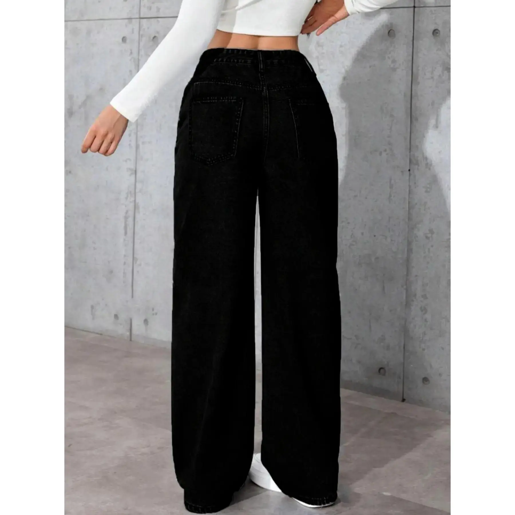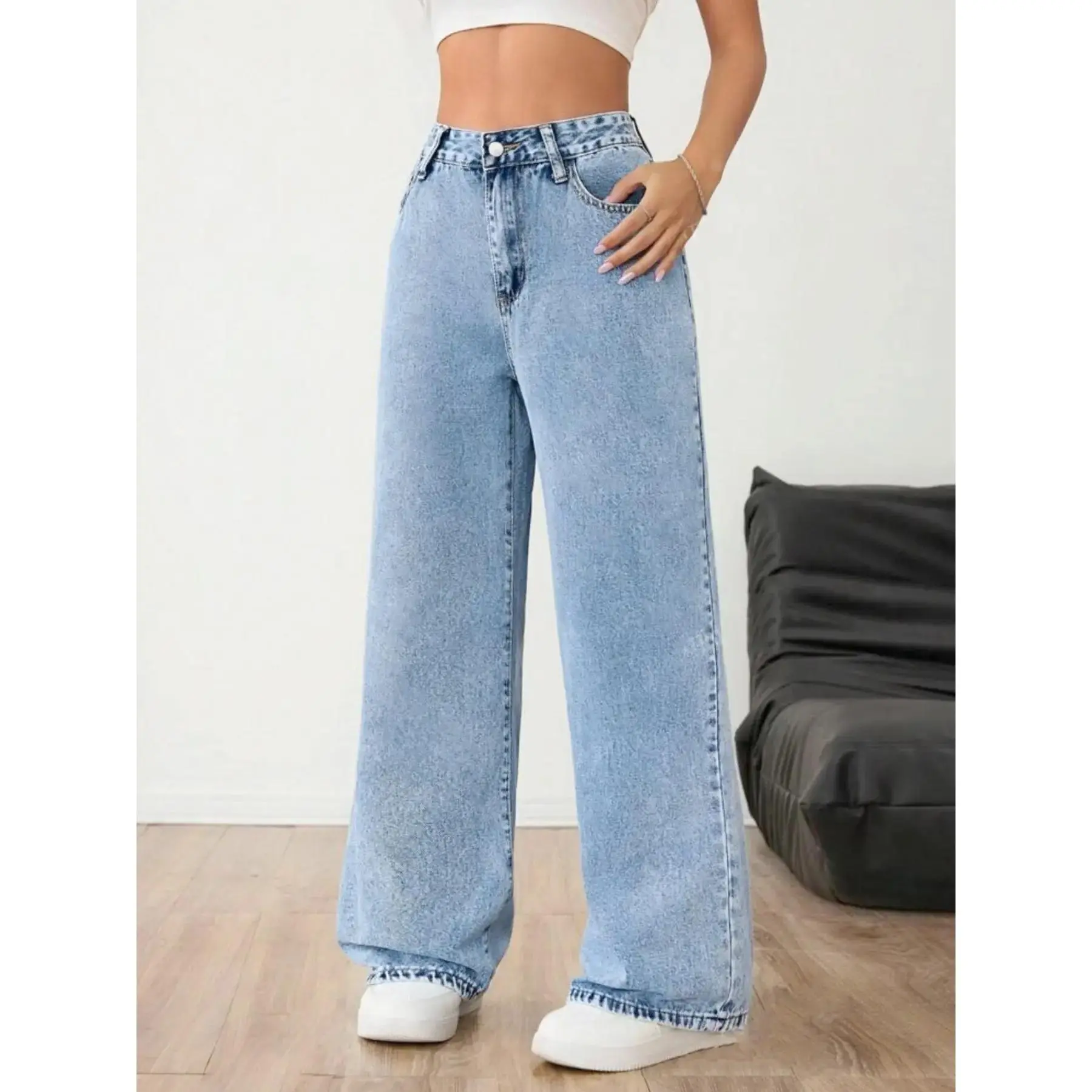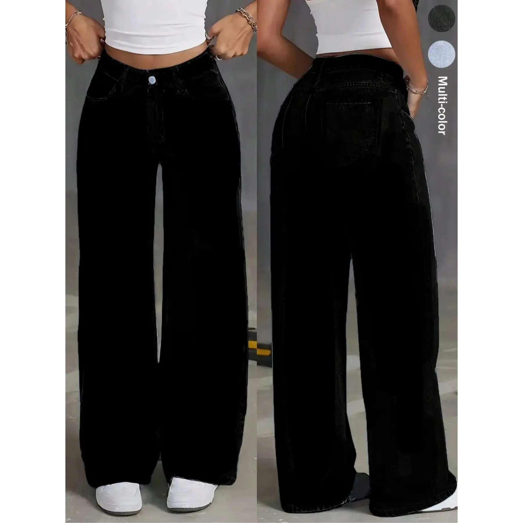 Women's Wide Leg Jeans, Casual Simple Denim, All Seasons Wear, Versatile Daily Use, Loose Fit, Natural Waist