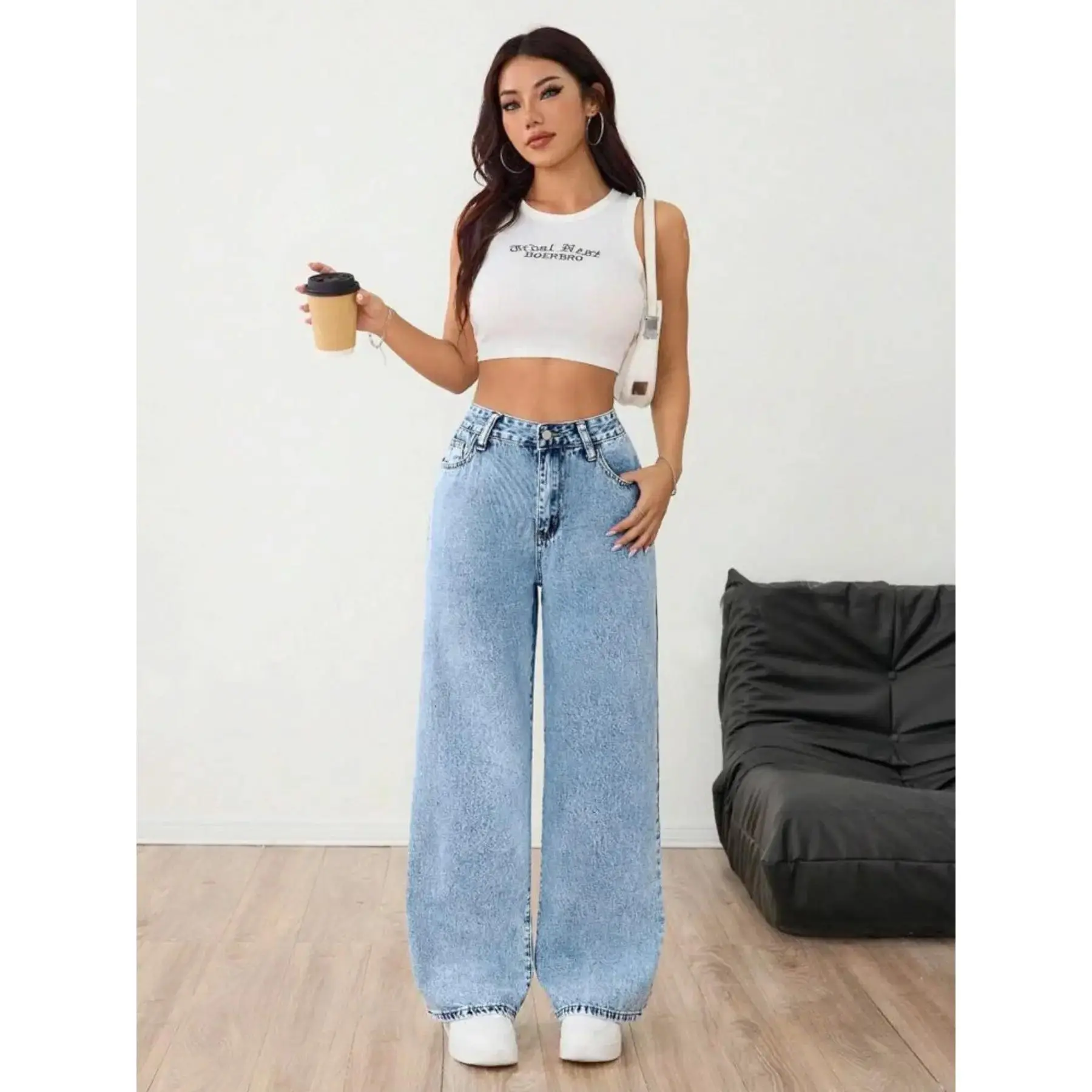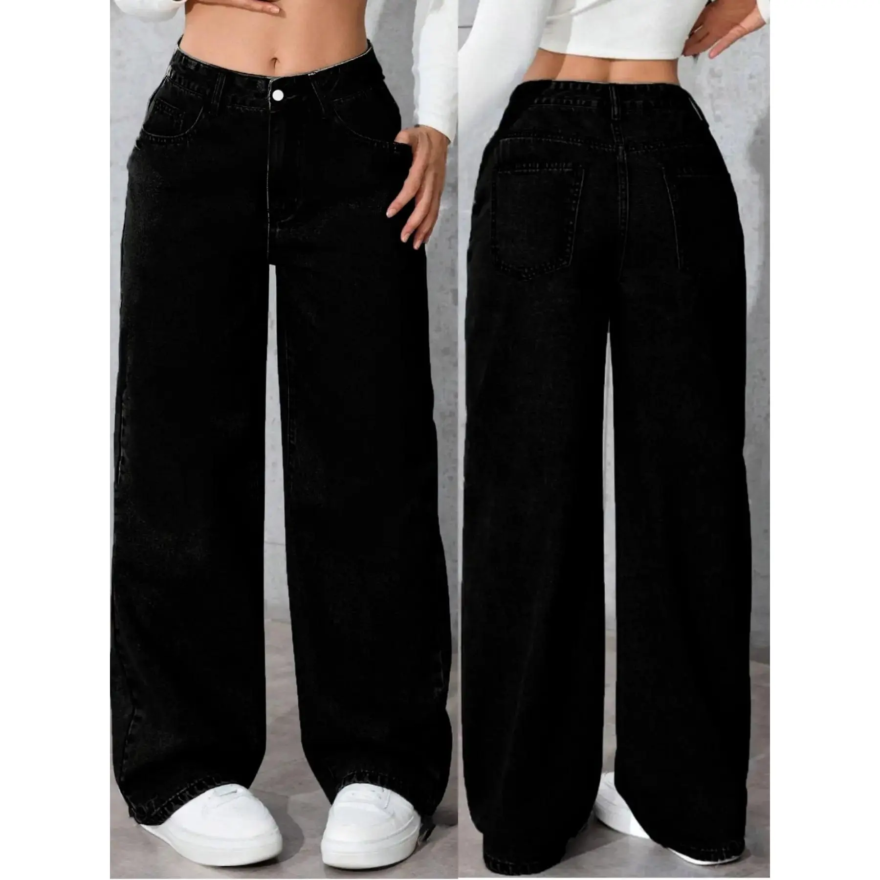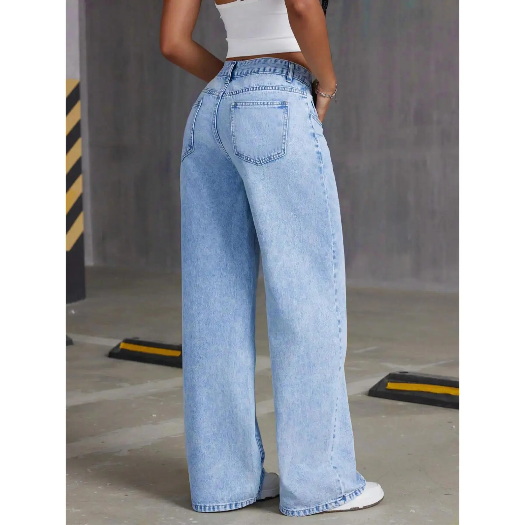 Women's Wide Leg Jeans, Casual Simple Denim, All Seasons Wear, Versatile Daily Use, Loose Fit, Natural Waist