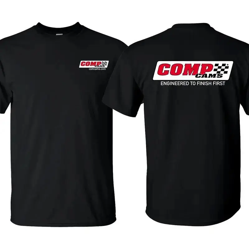 COMP Cams Racing T-Shirt, Engineered to Finish First Mechanic Tee, Automotive Performance Shop Shirt, Premium Cotton Blend, Unisex Fit for Men and Women, Gift for Car Enthusiasts, Racers, and Mechanics