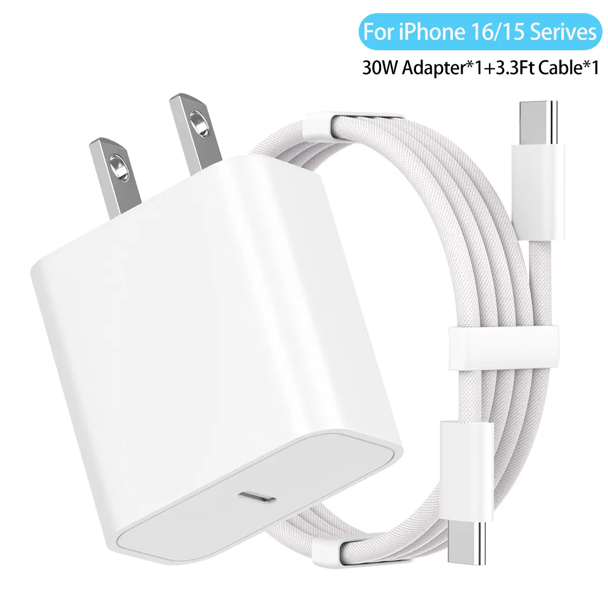 30W Fast Charging Adapter Kit USB C Wall Charger 3.3Ft/1M Type C Braided Data cable For iPhone 16 15 Pro Max Samsung Xiaomi ipad Super Fast ChargingAdapter & Cable Set Cellphone ElectronicAccessories