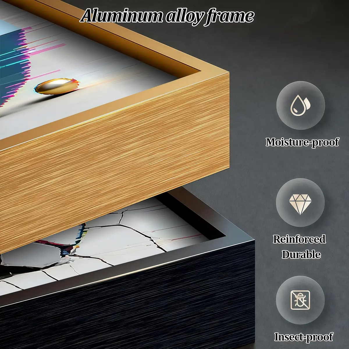 3 Counts Aluminum Alloy Framed Painting, Abstract Wood Texture And Golden Spark Art Pictures, Home Decoration For Living Room, Bedroom, Office, Restaurant, Hallway Wall Decor, Odorless Print Artwork, Luxury Perfect Gift For Friends And Family