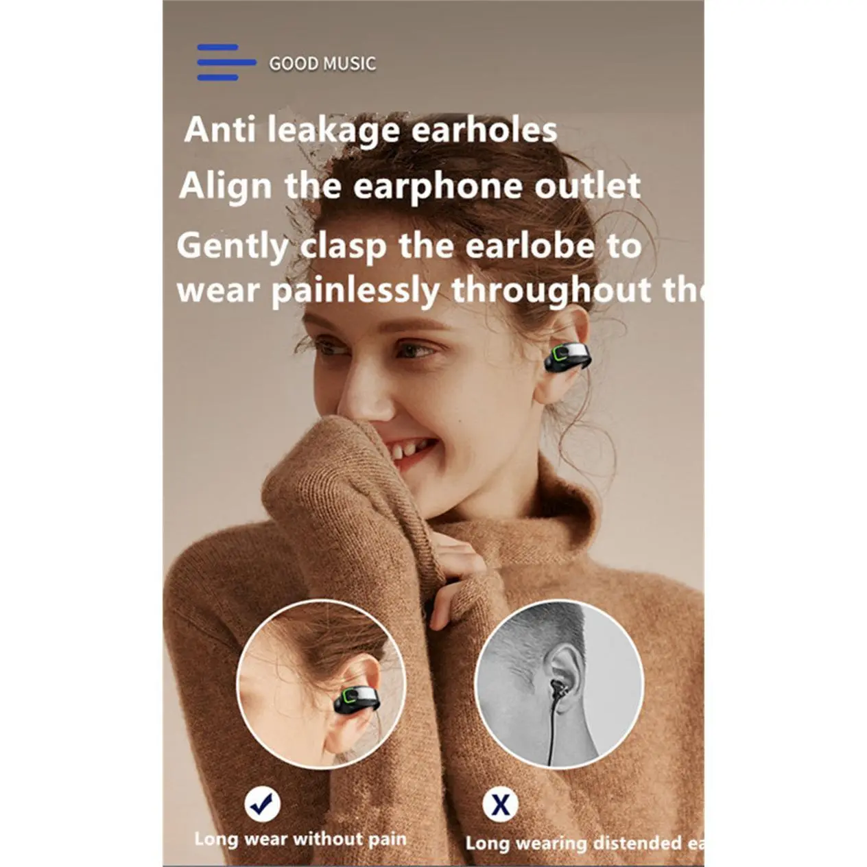Earphone clip on ear design: long-term wearing ear will not feel pain, will not damage the hearing. The unique way to wear it will make you shine! New open experience:you don't need to take off your headphones, you can sense the sound around you, and you can easily talk with friends while wearing headphones Low Latency:BT5.3 technology brings a more stable and faster wireless connection to your device, say goodbye to game audio lag, and enjoy wireless freedom. Lightweight design: Individual headphones weigh only 6g. According to the shape of the human ear, disperse the stress point of the ear, so that the ear is evenly stressed during intense exercise and is not easy to fall off. HD surround high fidelity sound quality:High quality high moving coil driver delivers powerful, balanced noise reduction 9D stereo for an incredible listening experience. Deep noise reduction: The intelligent noise reduction for HD calls and the voice noise reduction technology for intelligent voice calls greatly optimize the clarity of the sound. One-key operation:The popular one-key touch control function supports switching songs, calling and calling voice assistants. Ideal for daily listening to songs:playing games, sports, etc. Note: The earphones are single earphones