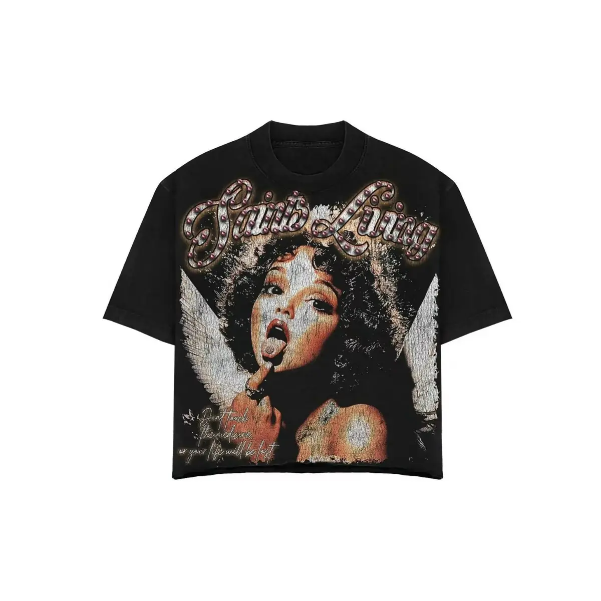 This men's Y2K vintage T-shirt boasts a bold angel wings and lips graphic. It merges retro aesthetics with modern street fashion. The eye-catching design makes it a standout piece for edgy and expressive outfits. Perfect for casual wear, street style, or social outings, this T-shirt adds personality and a trendy vibe. #Y2KFashion #VintageTshirt #StreetwearStyle