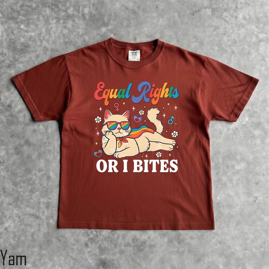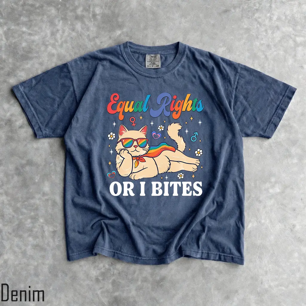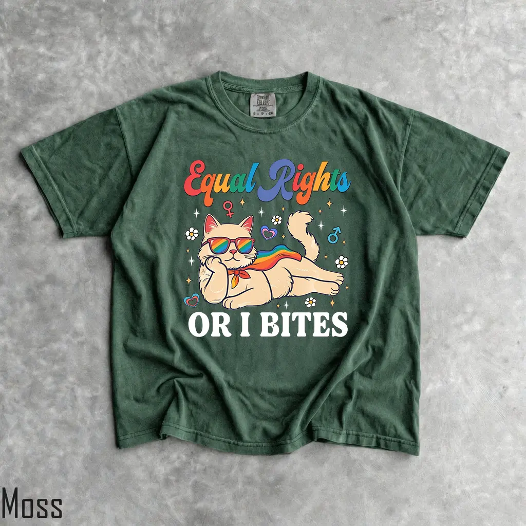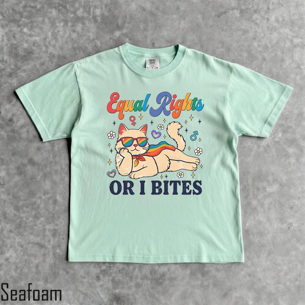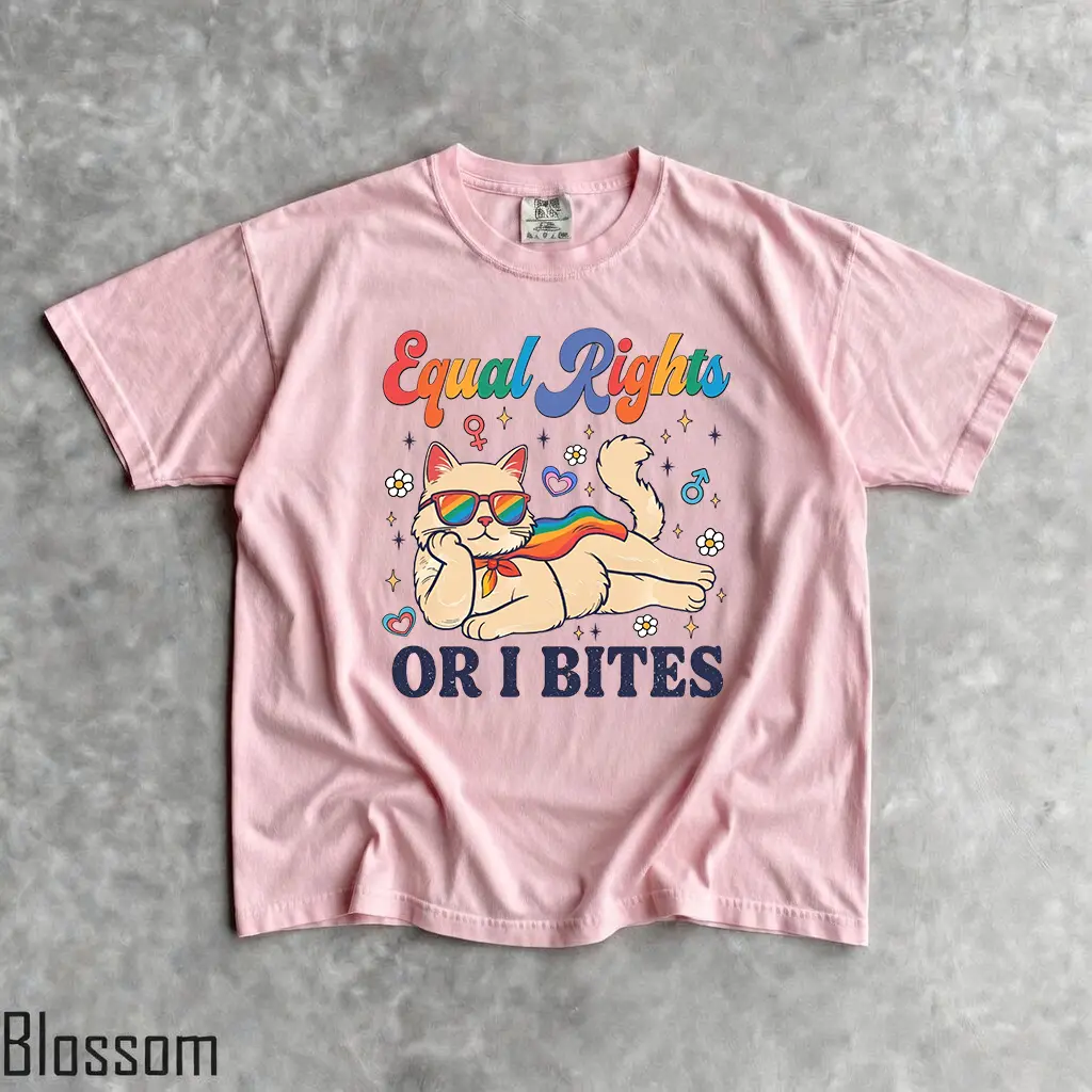 Comfort Colors Equal Rights or I Bites Shirt, Feminist Cat Shirt, Rainbow Pride Tee, Lesbian & Gay Pride Apparel, LGBTQ Ally Gift