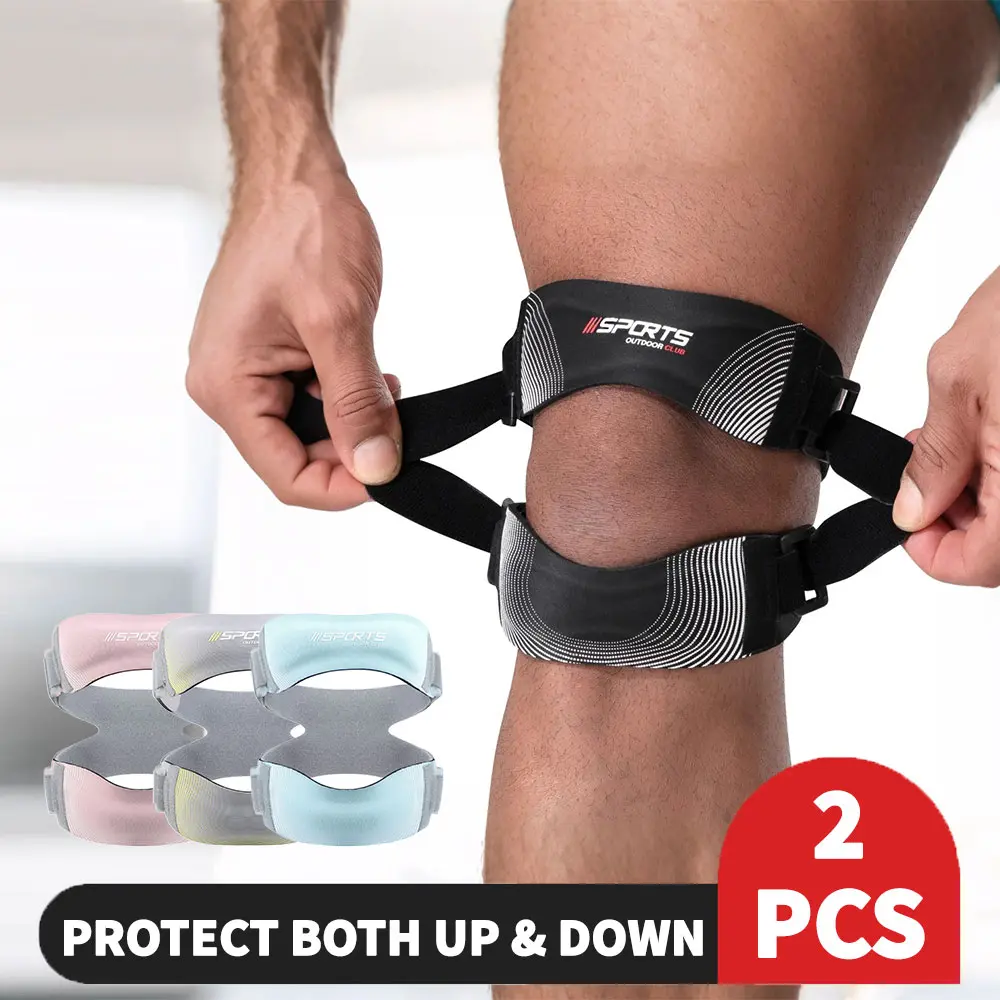 2PCS Adjustable Compression Knee Support with Patella - Unisex Heavy-Duty Joint Stabilizer for Running, Basketball (Gray/Blue/Black) - Premium Textile, Knee Compression Sleeve Men's Weightlifting Knee Guard Weightlifting Knee Sleeve Women's Knee Protector