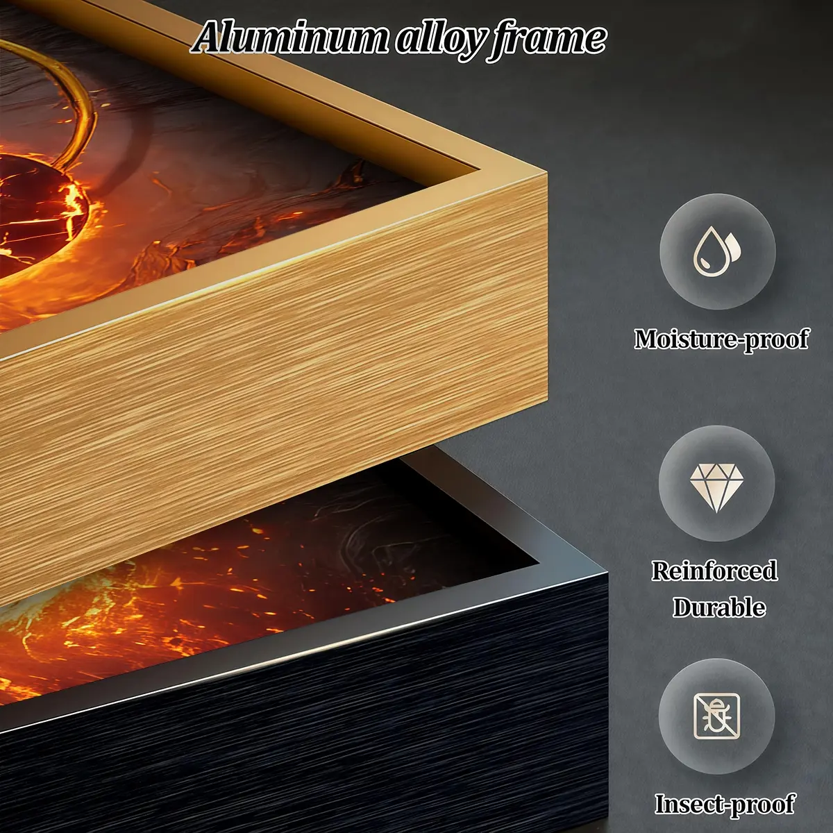 3 Counts Aluminum Alloy Framed Painting, Abstract Wood Texture And Golden Spark Art Pictures, Home Decoration For Living Room, Bedroom, Office, Restaurant, Hallway Wall Decor, Odorless Print Artwork, Luxury Perfect Gift For Friends And Family