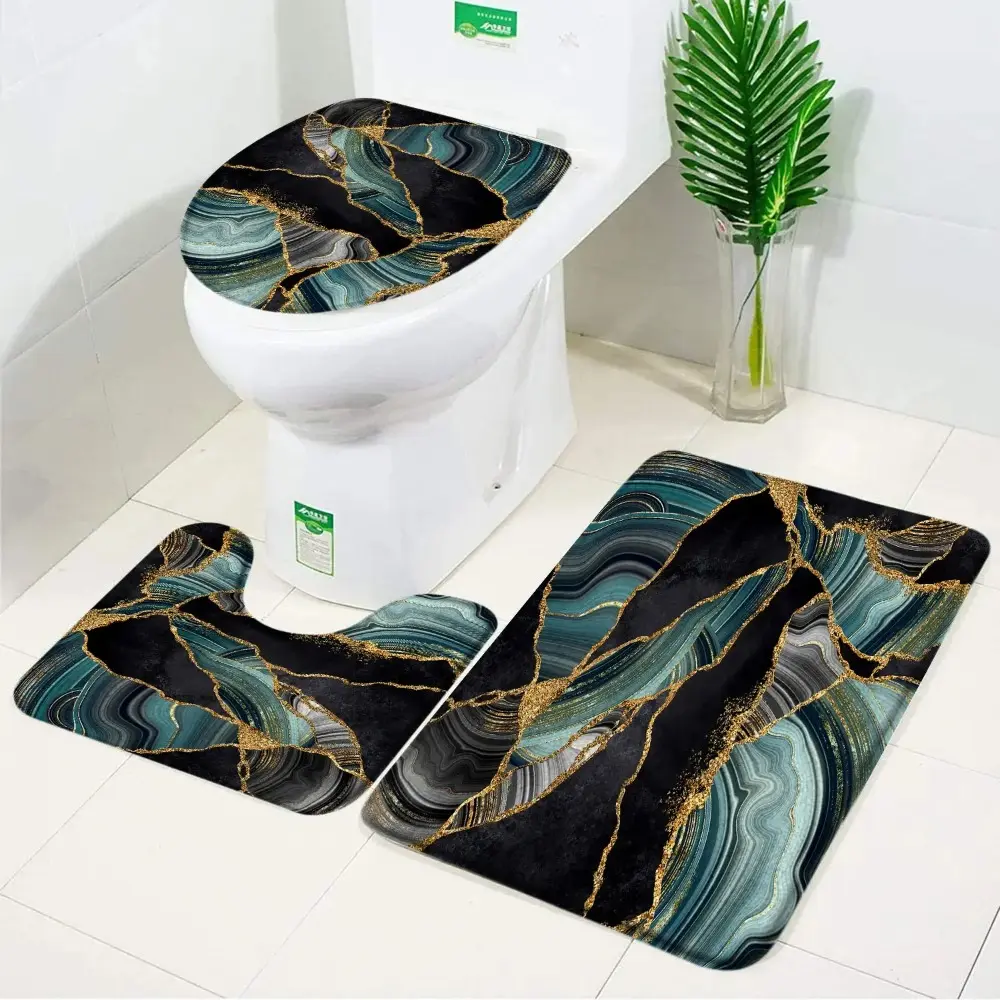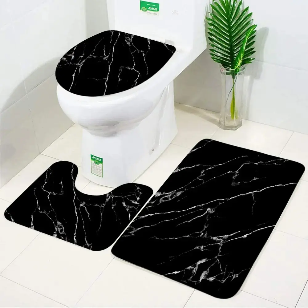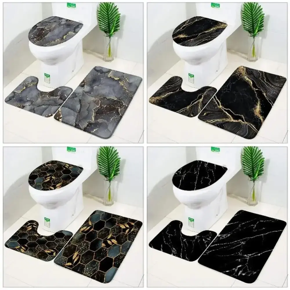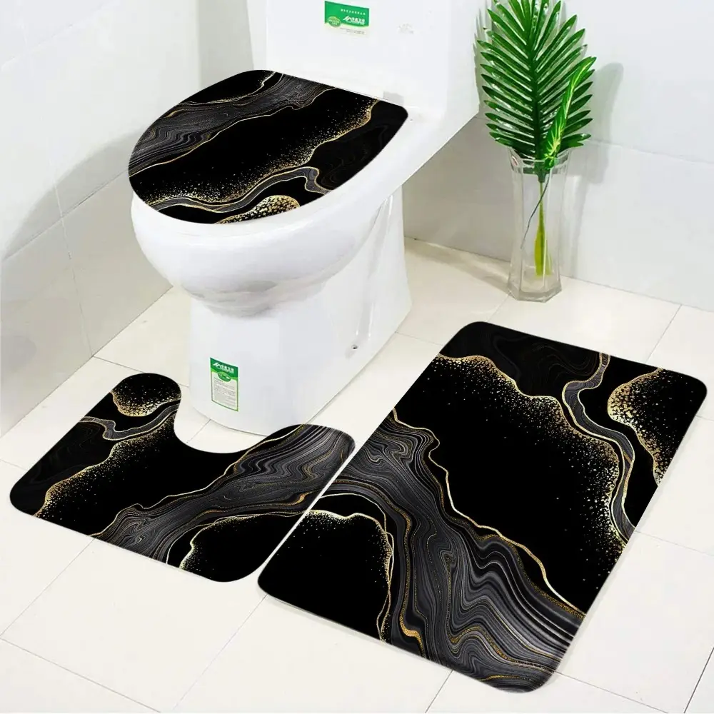 Black Marble Bath Mats Gold Grey Lines Creative Abstract Geometric Art Home 3pcs Sets Bathroom Door Rug Anti-Slip Toilet Lid Mat