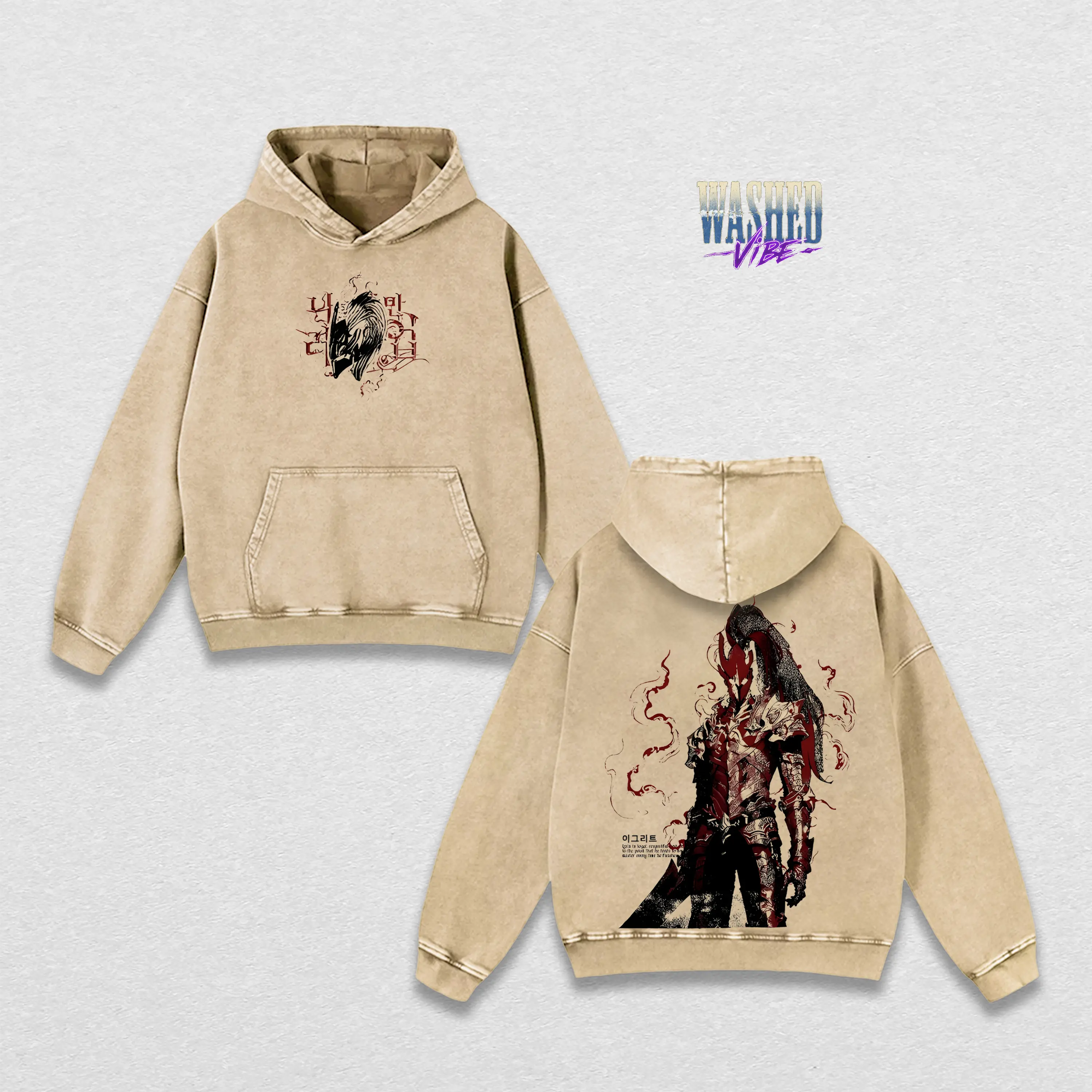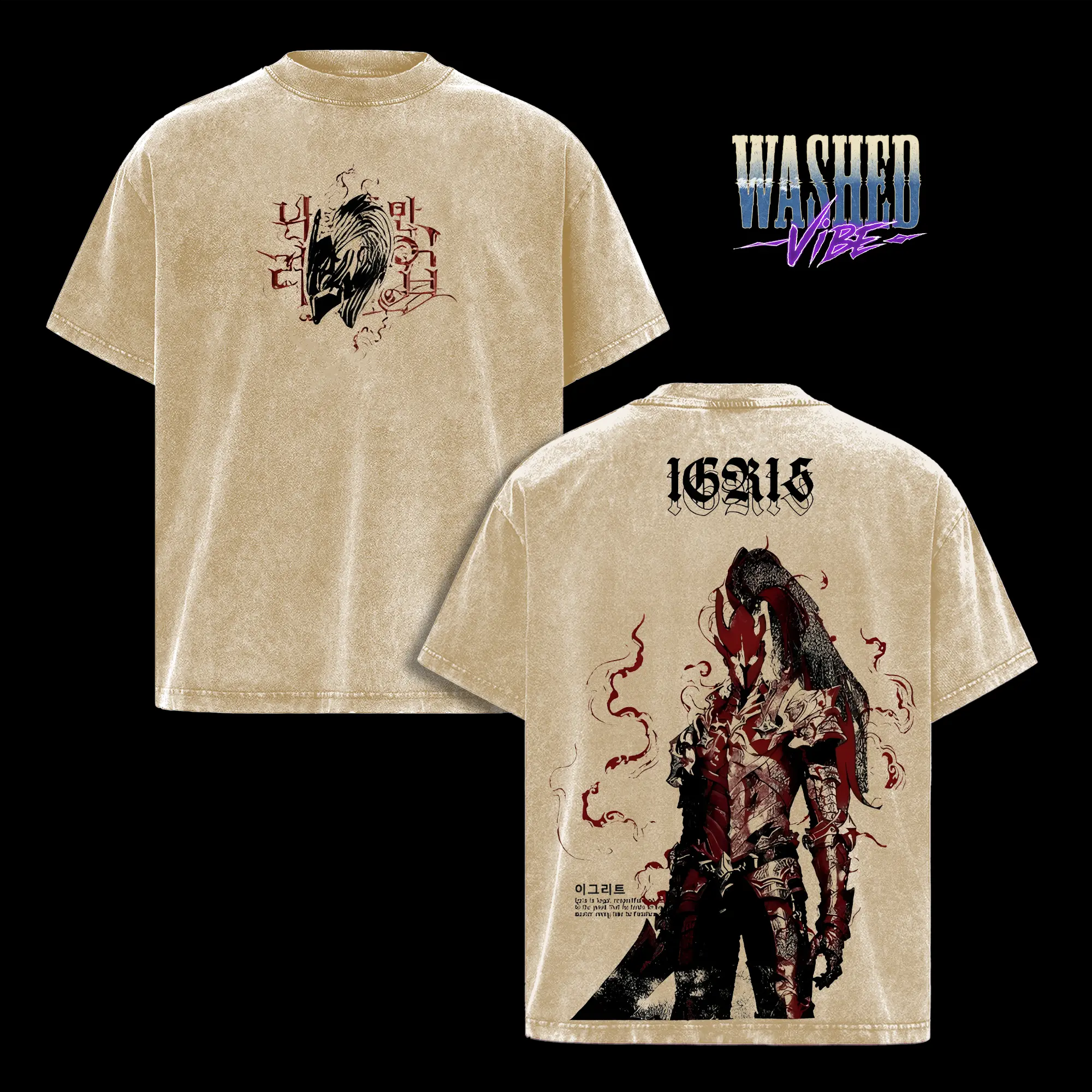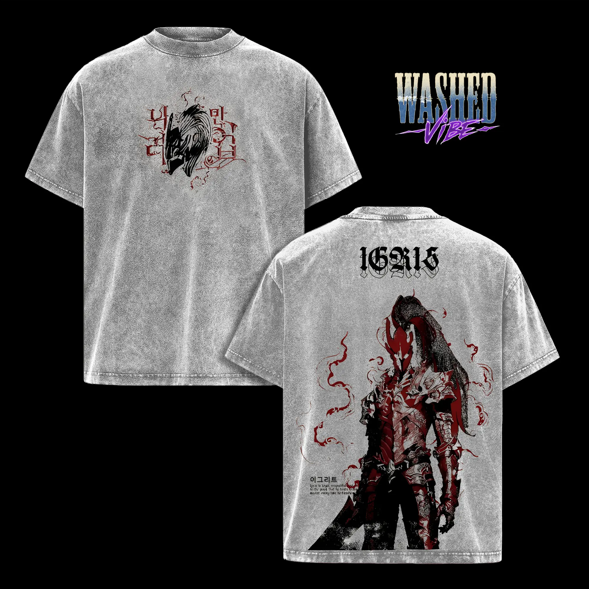 5. Retro Heavy Limited Vintage Shadow Soldiers IGRIS, Sweatshirt and Hoodie Washed T-Shirt Solo Leveling Anime Double Printed Vintage Washed Tee Unisex Oversize Anime Manga Washed Heavyweight Cotton T-shirt