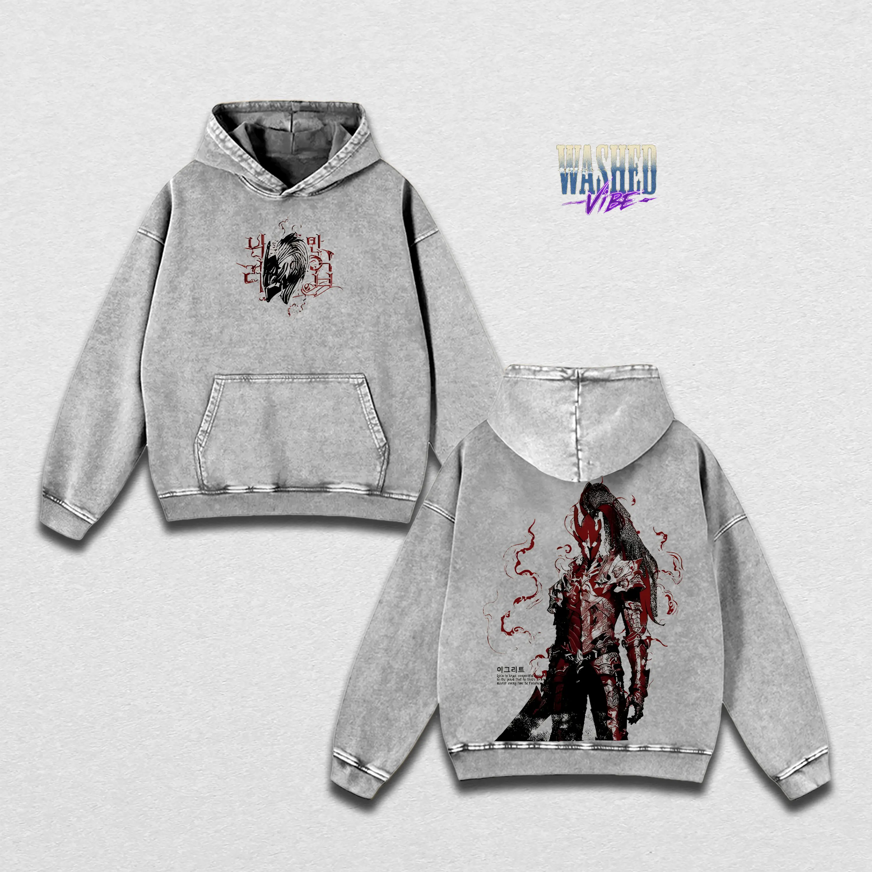 Retro Heavy Limited Vintage Shadow Soldiers  IGRIS, Sweatshirt and Hoodie Washed  T-Shirt Solo Leveling Anime Double Printed Vintage Washed Tee Unisex Oversize Anime Manga Washed Heavyweight Cotton T-shirt