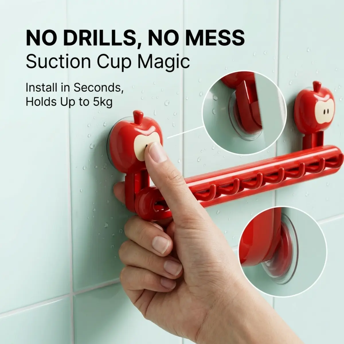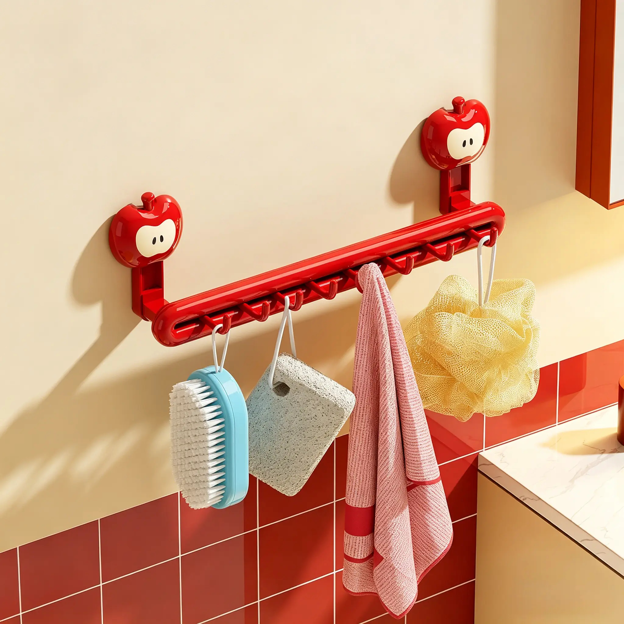 We believe cute things should be built to last.Crafted from thick, high-quality ABS material, this rack features a mirror-like glossy finish.It fully resists bathroom moisture and water splatters, keeping its vibrant cherry-red shine day after day.