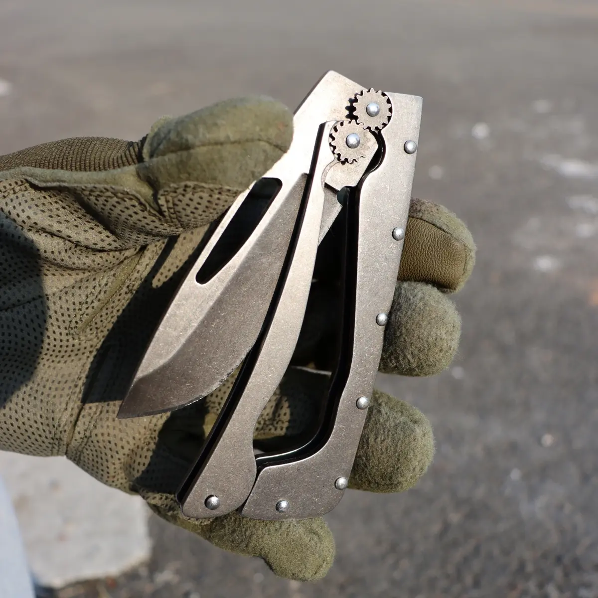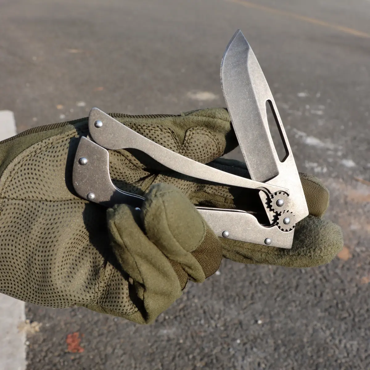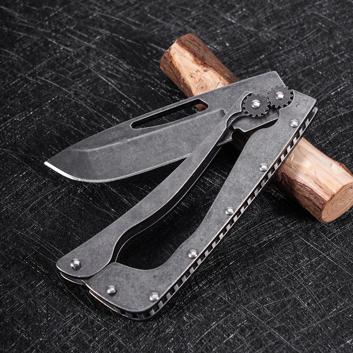 EDC Gear Mechanism Folding Pocket Knife,Tactical Stonewashed Gear Folding Knife, Must-Have Survival Gear for Outdoor Adventures
