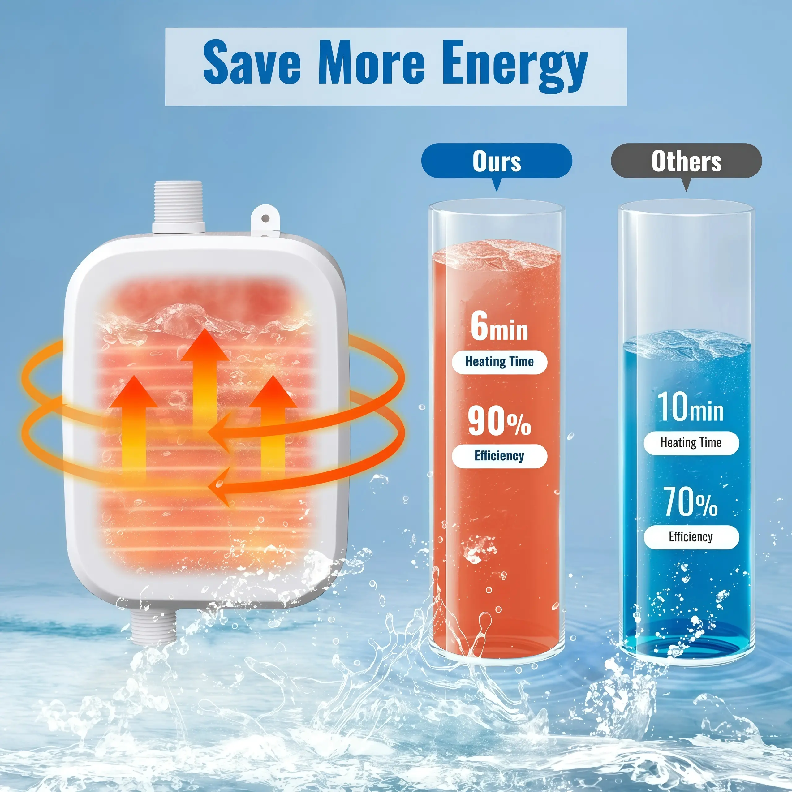 ·Reinforced stainless steel heating unit, high power heat conduction, fast heating, constant temperature, continuous supplying, more comfortable to use. No need to store water, no need to preheat, no need to repeatedly heat insulation, energy saving and power saving.