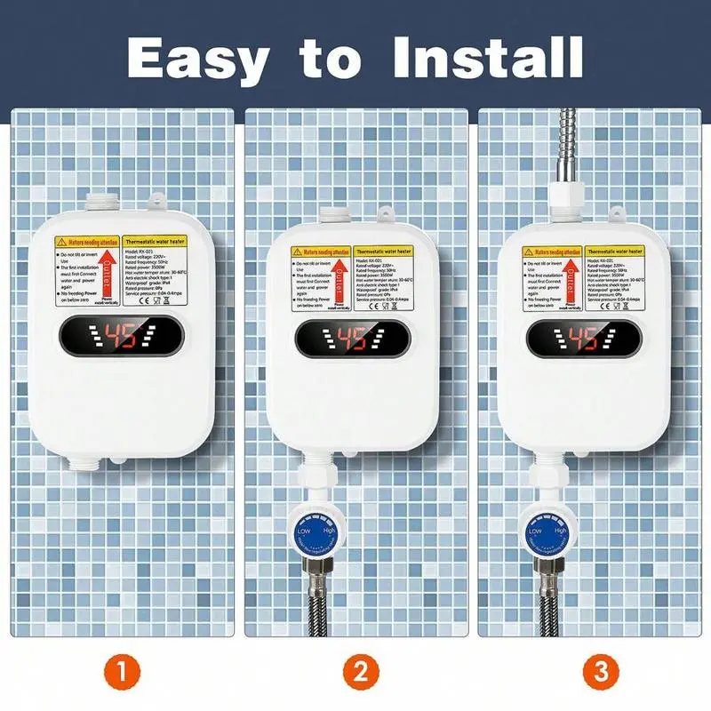 ·The water heating device is small and compact and does not take up space. Easy to install, IPX4 water the body is fearless of water droplets splashing, suitable for bathroom, kitchen, and other occasions.