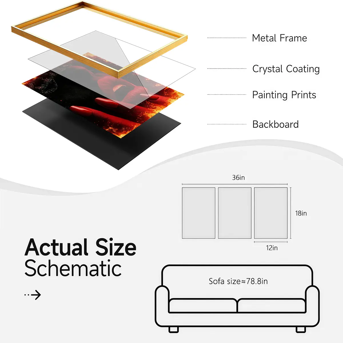 3 Counts Aluminum Alloy Framed Painting, Abstract Red Lips And Black Hat Lady Pictures, Home Decoration For Living Room, Bedroom, Office, Restaurant, Hallway Wall Decor, Odorless Print Artwork, Luxury Perfect Gift For Friends And Family