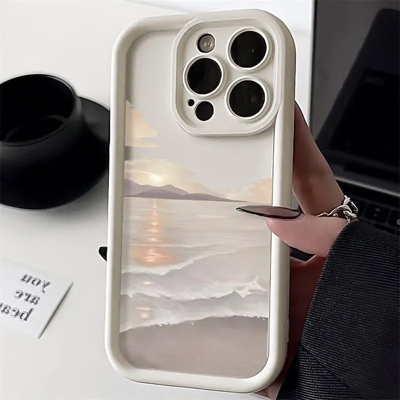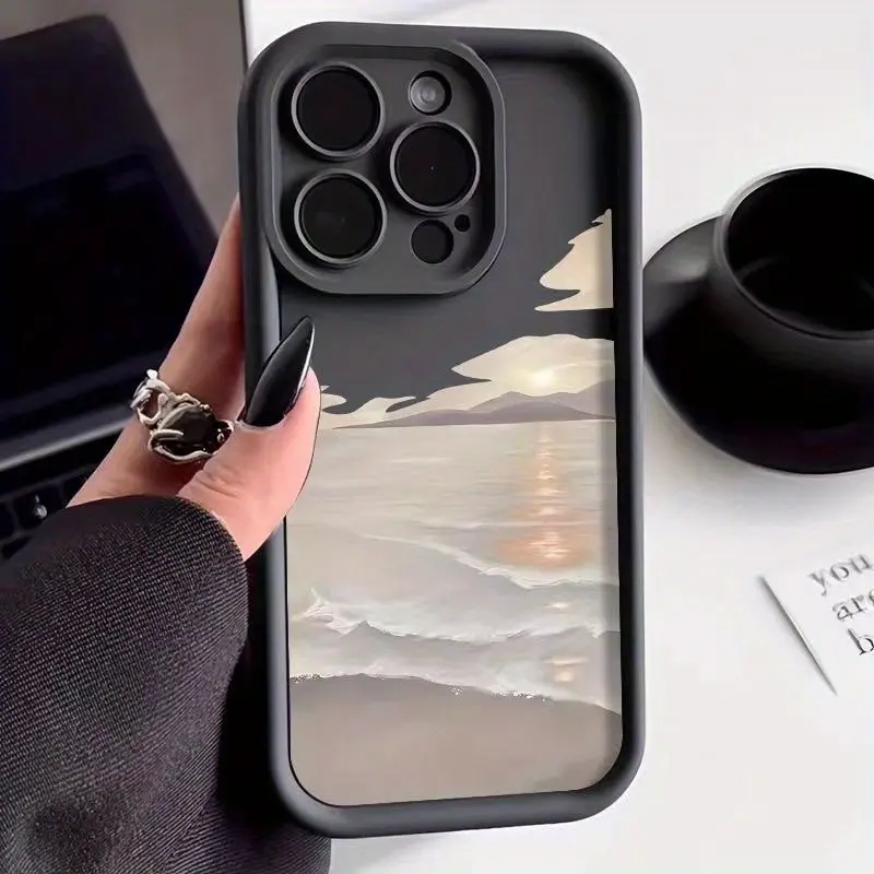 Phone case: Seaside Sunrise Anti-Drop Soft Case, Simple and Premium Air Cushion Compatible with iPhone 17 E Air Pro ProMax iPhone16 15 14 Plus 13 12 Mini 11 X XS XR, Couple Anti-Drop Matte Unisex Full Coverage Pro Soft Case Protective