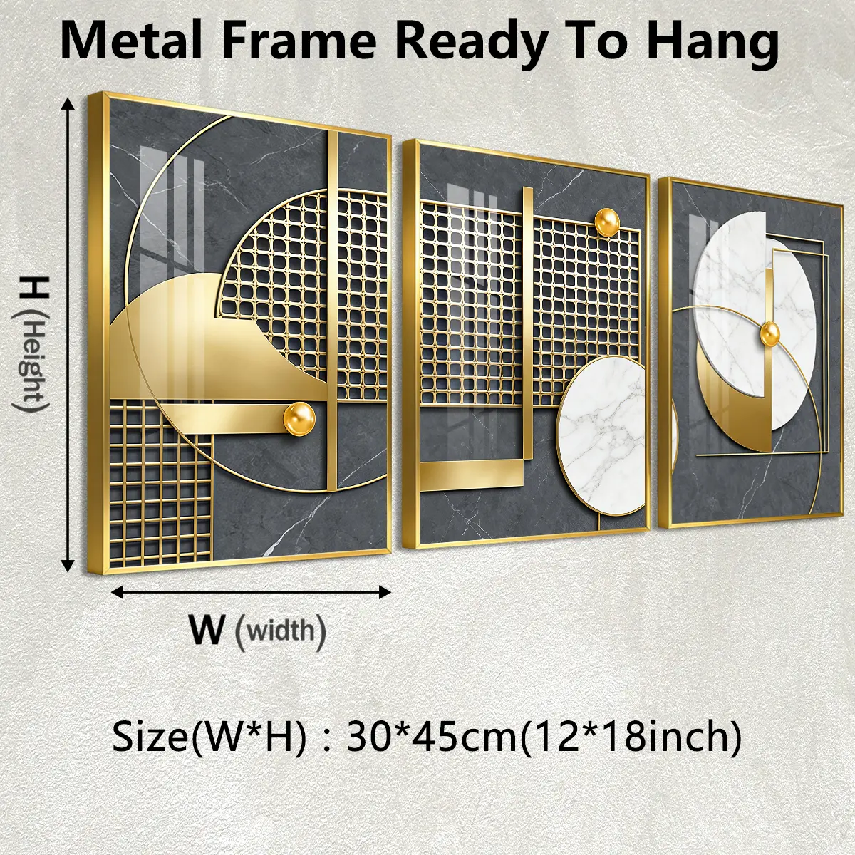 3 Counts Aluminum Alloy Framed Painting, Geometric Gold And Marble Abstract Art, Home Decoration For Living Room, Bedroom, Office, Restaurant, Hallway Wall Decor, Odorless Print Artwork, Luxury Perfect Gift For Friends And Family