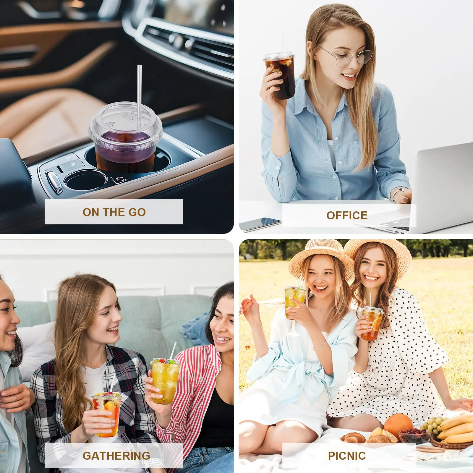 Versatile for Any Occasion: These round plastic coffee cups with lids and straws are suitable for any occasion, whether it's weddings, Christmas, birthdays, graduation parties, cafes, family gatherings, picnics, or daily home use. Ideal for serving iced coffee, slushies, milkshakes, lemonade, juice, cocktails, carbonated drinks, sparkling water, and more, catering to diverse beverage needs