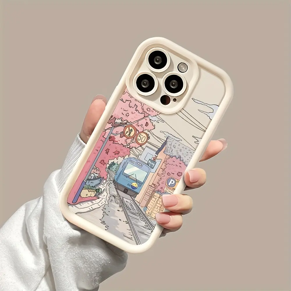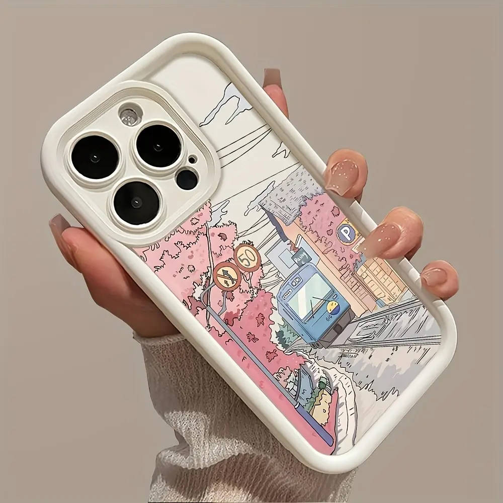 Phone Case - White Bamboo Pink Cherry Blossom Track Pattern for iPhone 17 E Air Pro ProMax iPhone16 15 14 Plus 13 12 Mini 11 X XS XR