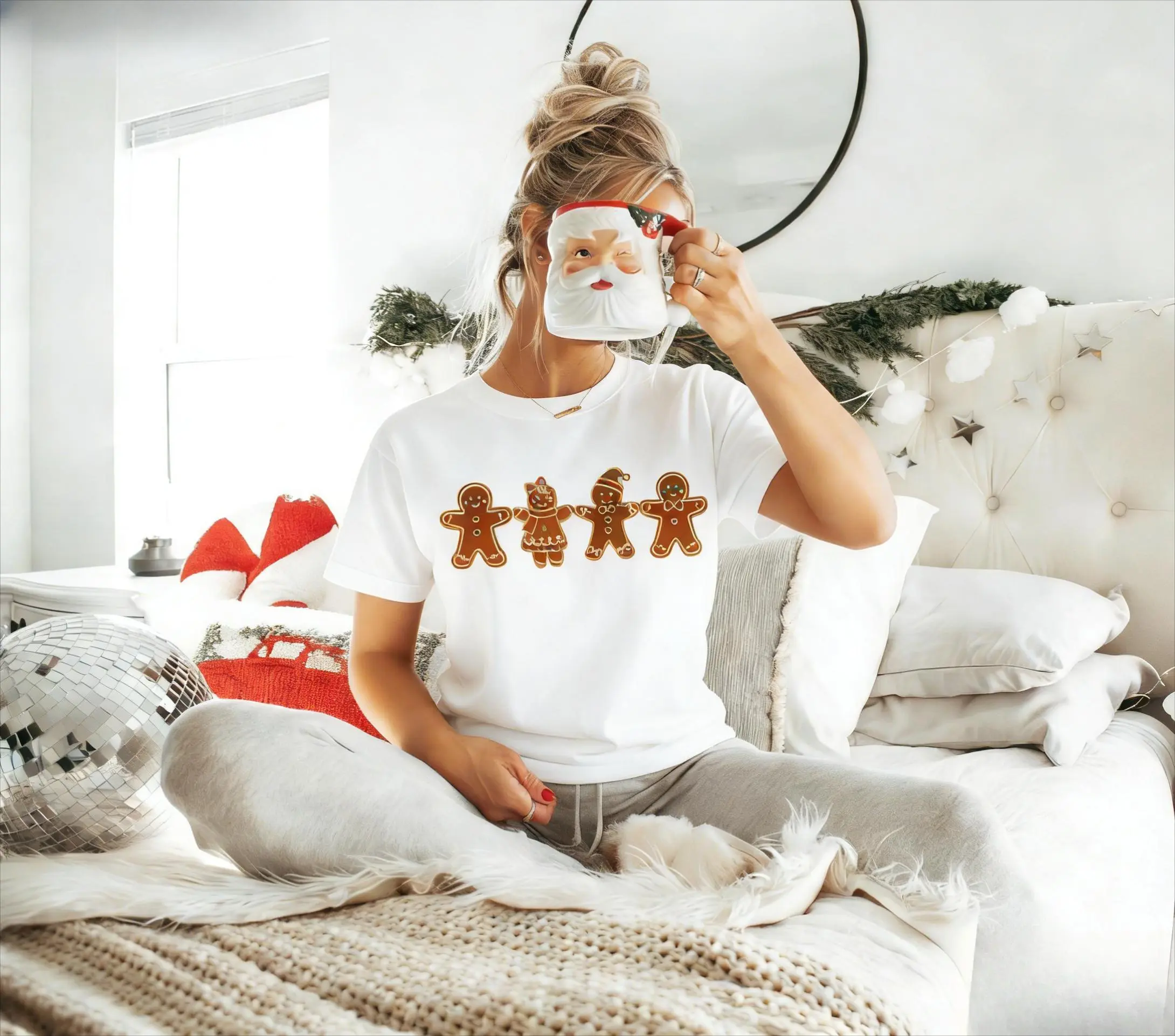 Oversized Christmas T-Shirt, Vintage Washed Gingerbread Man Graphic Tee, Retro Cute Holiday Shirt for Women, Aesthetic Cozy Top, Trendy Festive Apparel, Unique Gift for Her
