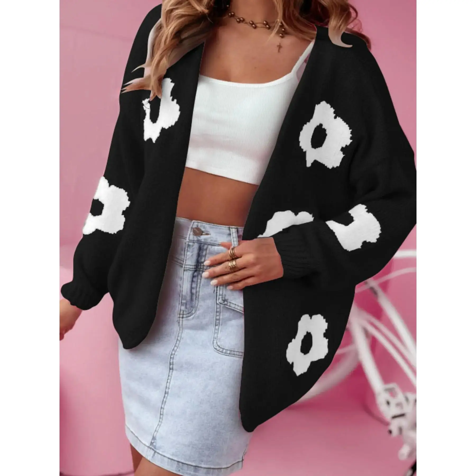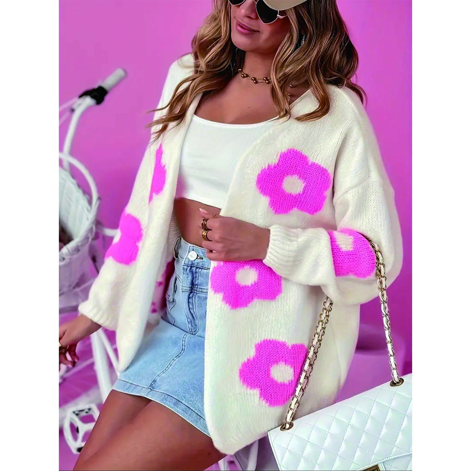 Plus Size Floral Print Drop Shoulder Cardigan, Casual Long Sleeve Open Front Knitwear for Fall & Winter, Women's Plus Clothing for Daily Wear