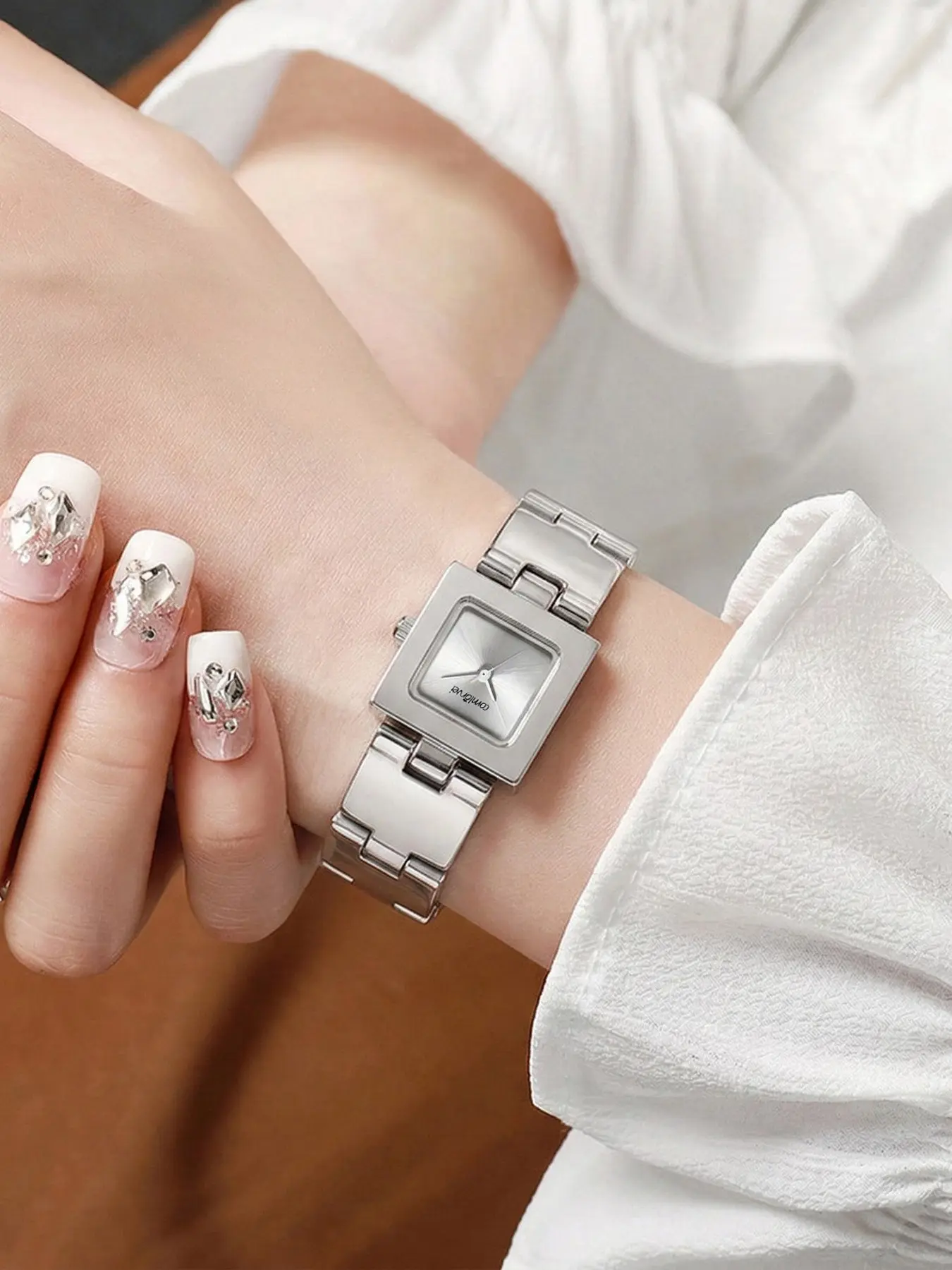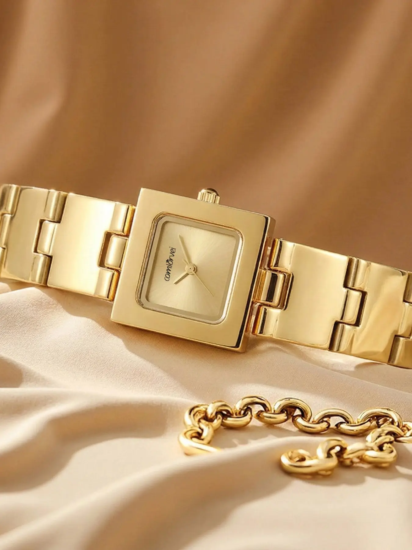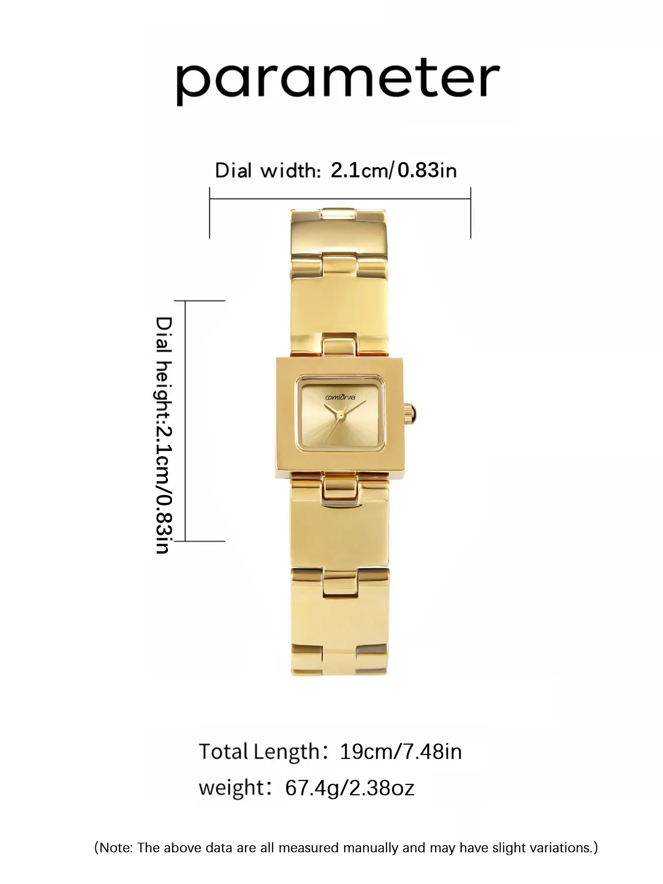 Ladies' luxurious square watch, designed with gold and silver colored stainless steel, with 30-meter water resistance. This fashionable and elegant timepiece is an exquisite gift for her.