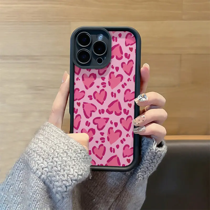 Phone Case: 1 High Bamboo Black and Pink Heart Leopard Print TPU Material Drop-Proof Case with Precise Cutouts and Full Coverage, Suitable for iPhone 17 E Air Pro ProMax iPhone16 15 14 Plus 13 12 Mini 11 X XS XR