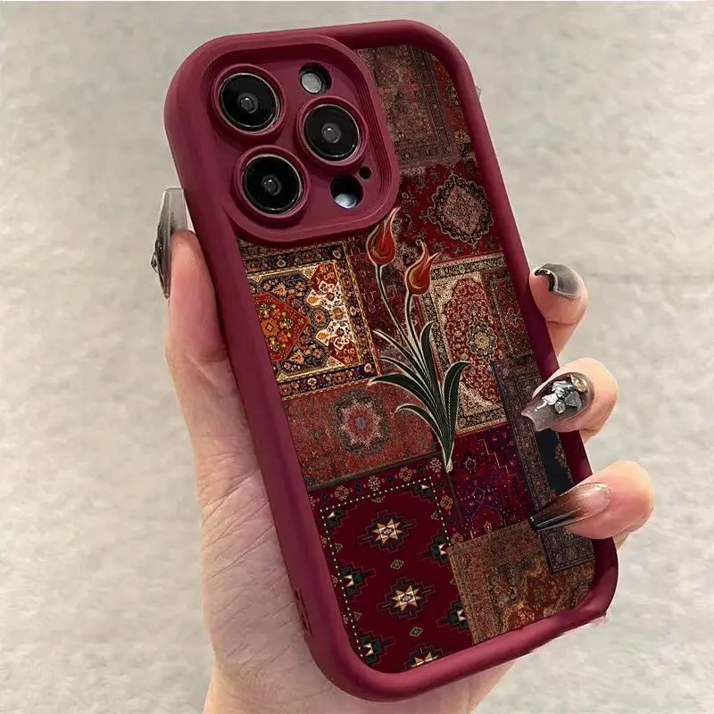 Phone Case - Retro Art Style Collage Red Tulip Pattern Phone Case for iPhone 17 E Air Pro ProMax iPhone16 15 14 Plus 13 12 Mini 11 X XS XR Premium Matte Frosted Th