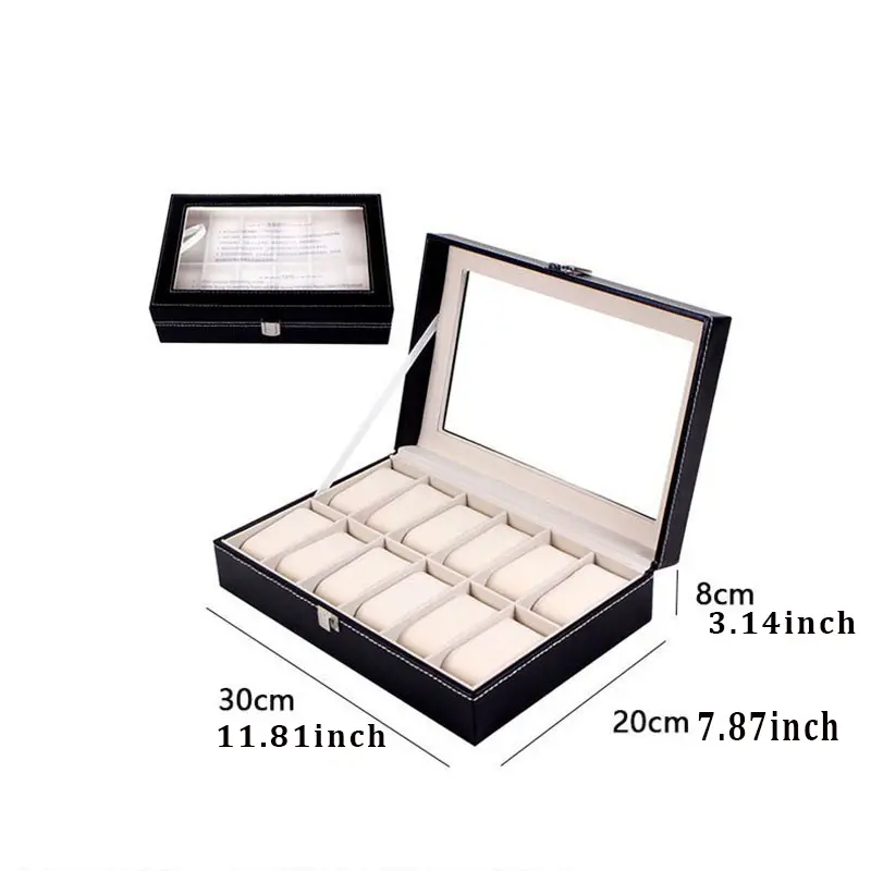 Multi-Slot Watch Display Case Organizer Box, Lockable PU Leather Storage Holder for Men & Women Watches, Durable & Stylish Design