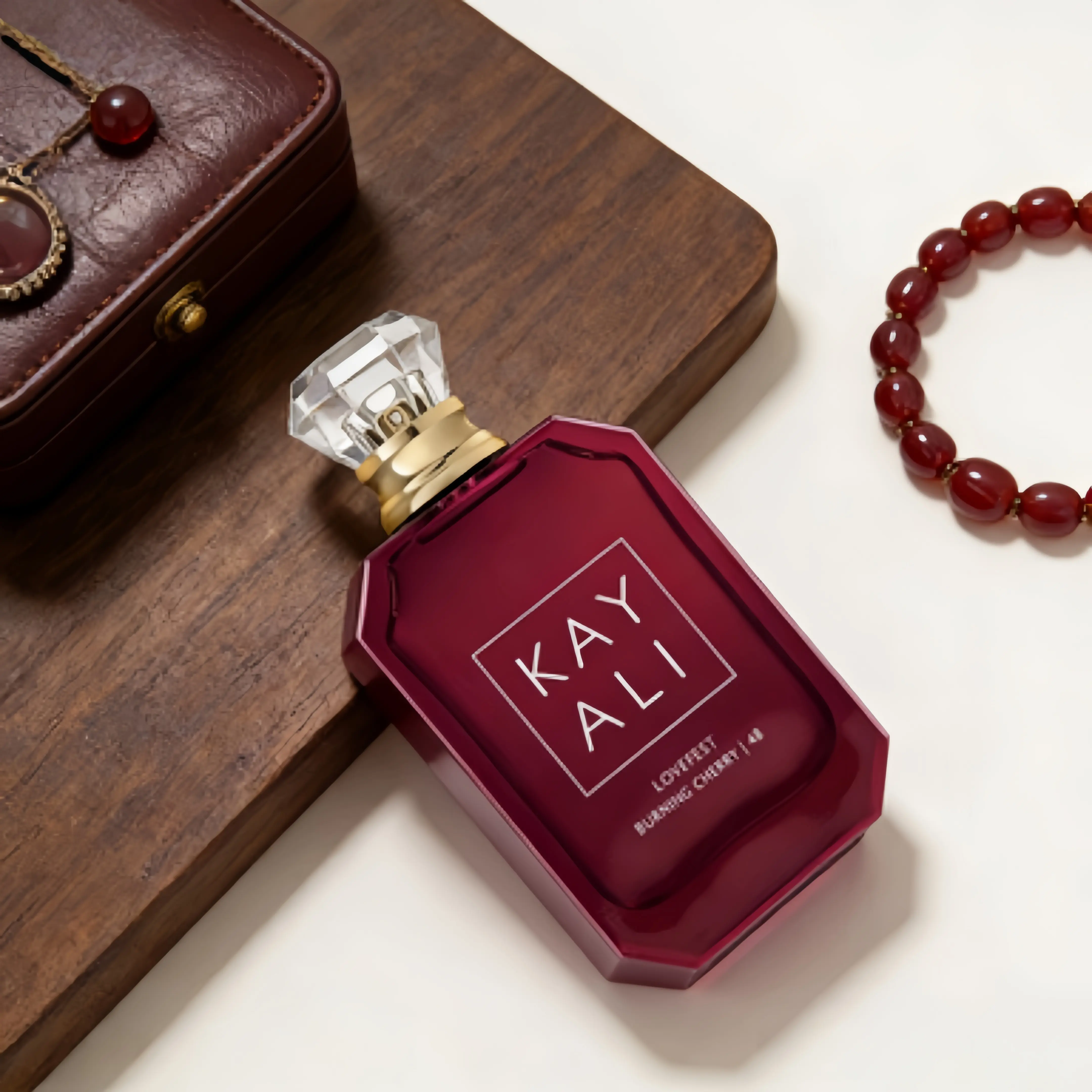 ·Product Name: Kayali Lovefest Burning Cherry 48 100ml. A name that suggests a unique and flavorful experience, aligning with the product's elegant presentation.